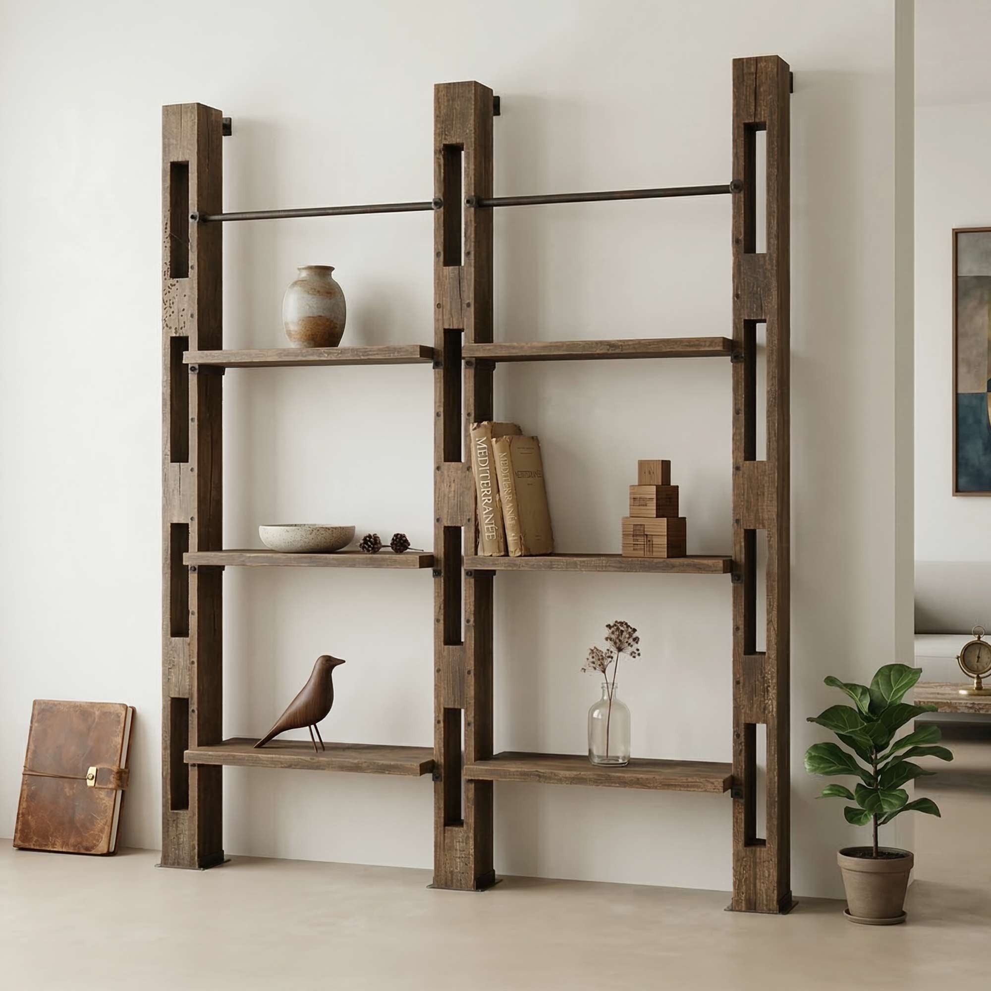 Cette incroyable étagère murale cible ceux qui n’ont pas peur d’afficher un style industriel brut et épuré. Sa conception massive en bois de manguier lui donne un léger aspect rustique, mais, on vous l’assure, ce meuble est presque indestructible et pourra littéralement durer des générations.