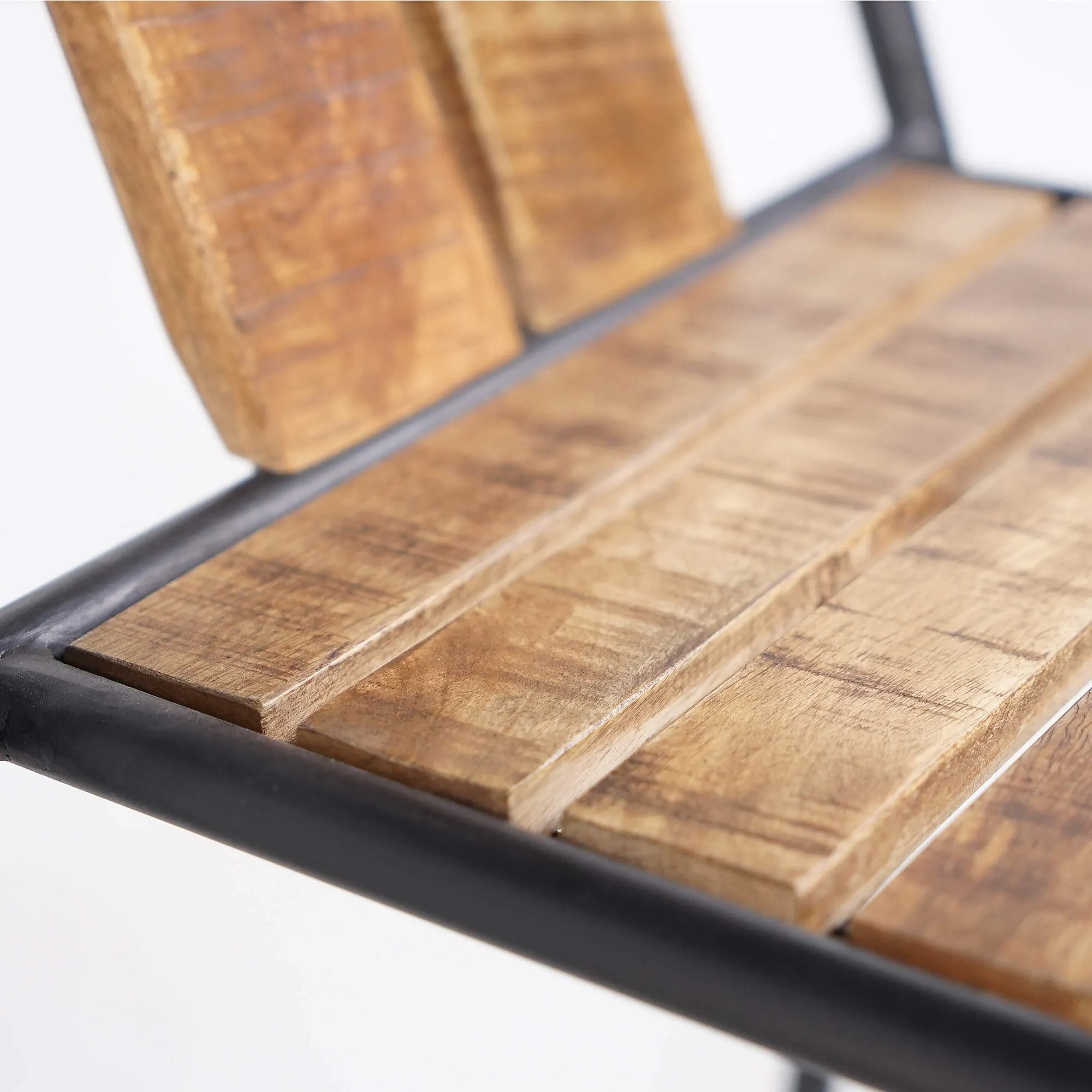 L’espacement entre les planches de Manguier ainsi que l’inclinaison du dossier ont été étudiés afin d’offrir un confort de premier ordre. Comme tous nos meubles industriels, le bois est traité anti tâches et prêt pour une utilisation intensive.