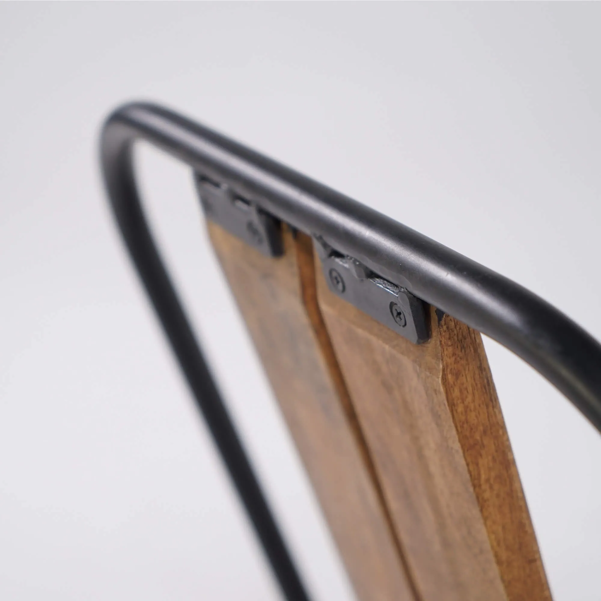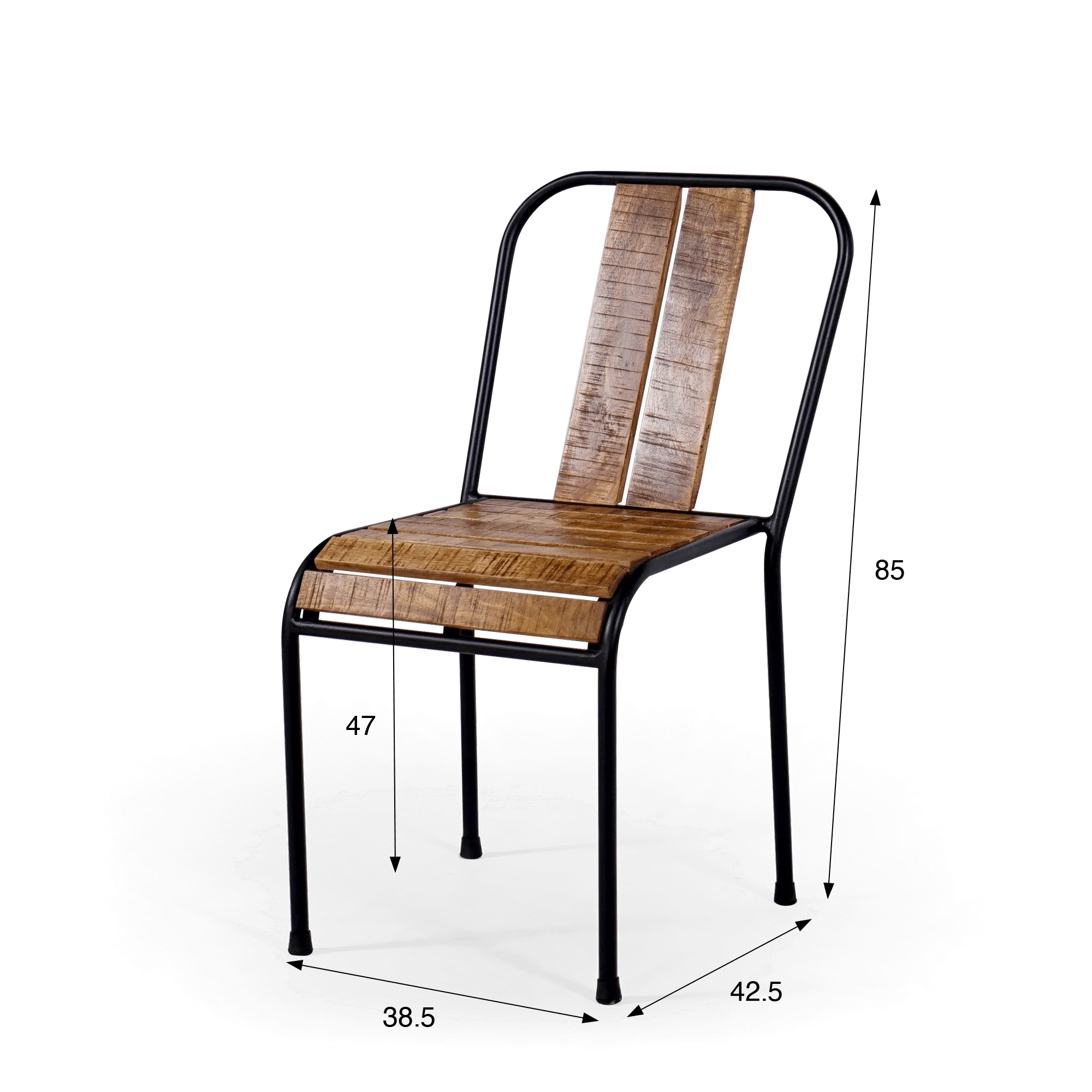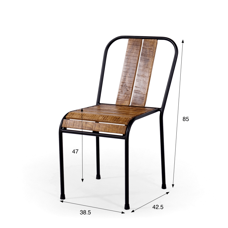 On adore la sobriété du piètement en métal et le contraste marqué du bois naturel de l’assise. Avec sa hauteur d’assise de 46 cm cette chaise bistrot industrielle sera parfaite autour d'une table à manger ou d'un bureau de préférence dans une matière brute comme le métal ou le bois.