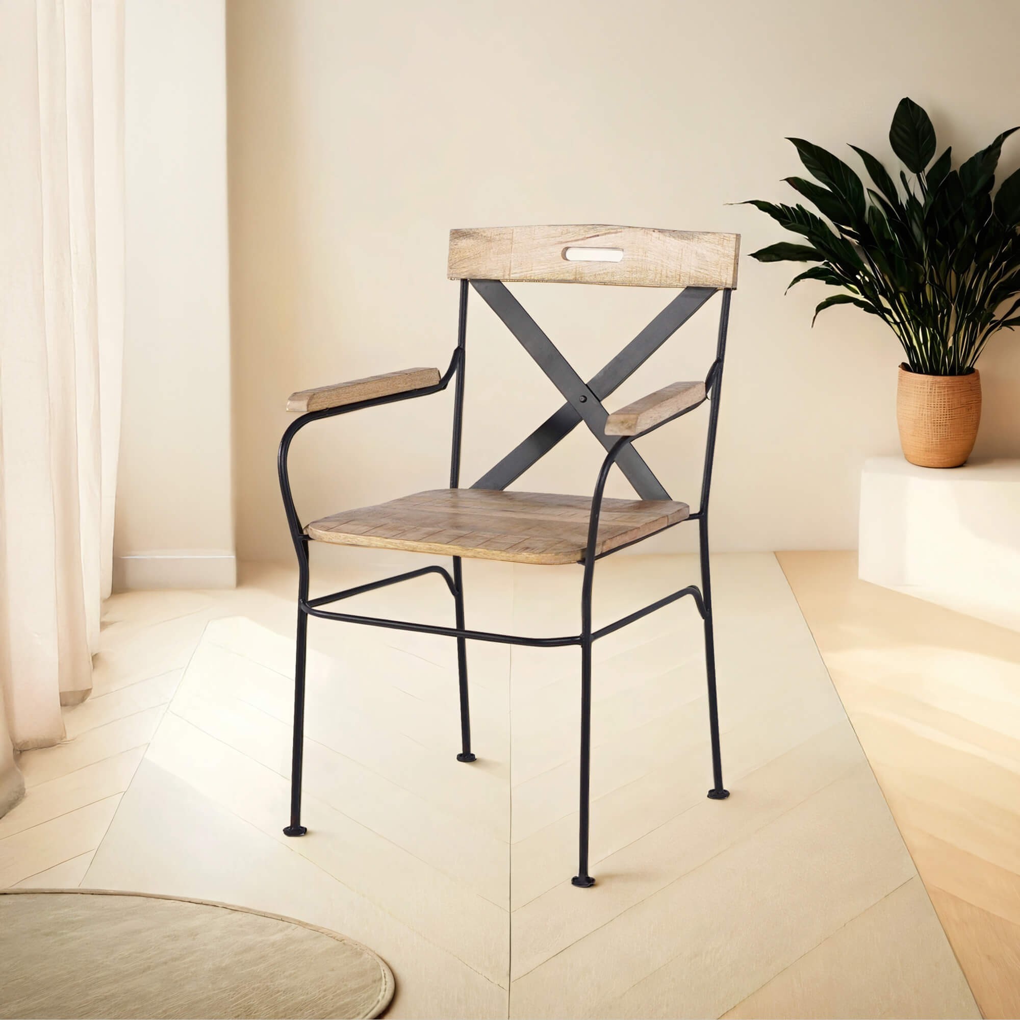 Le mariage harmonieux du bois et du métal dans le fauteuil Colombus témoigne de son caractère polyvalent. Que votre style soit industriel, vintage ou contemporain, cette chaise apporte une touche d'authenticité qui fait mouche. Elle transforme chaque moment assis en une expérience confortable et esthétique.