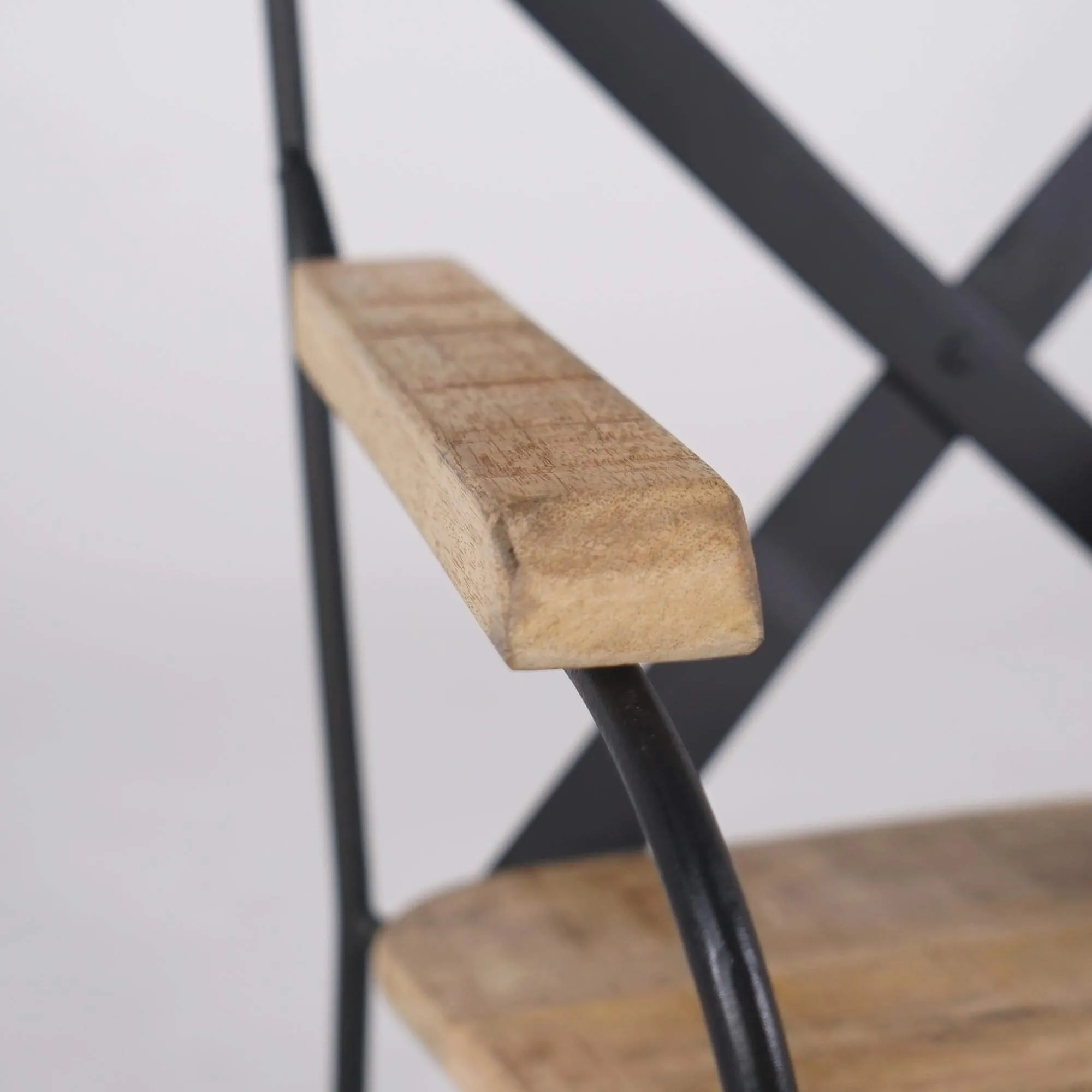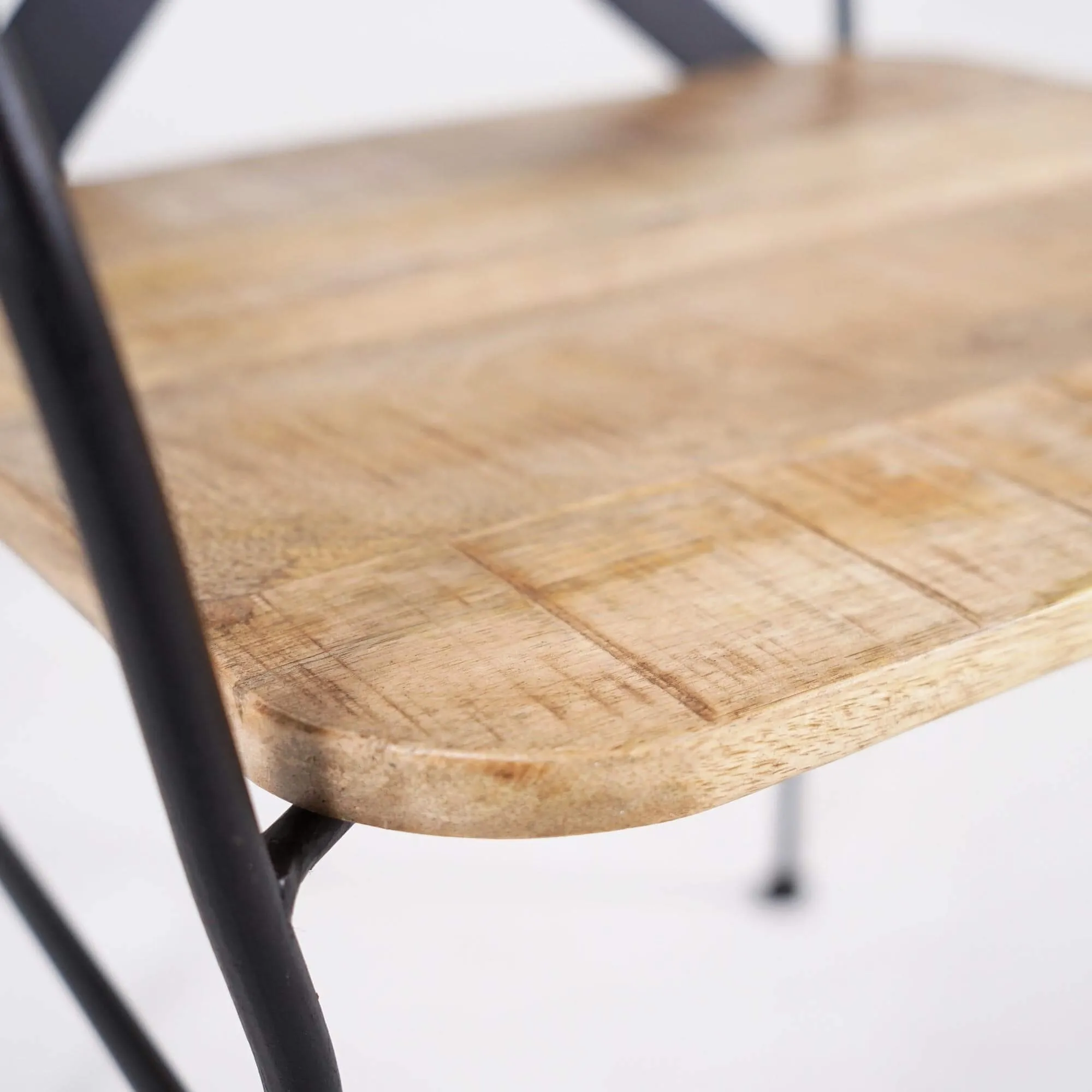 Fabriquée en bois de manguier avec une patine vieillie évocatrice et une structure en métal à la finition noire, la chaise industrielle Colombus se trouve à l'intersection de plusieurs styles de décoration d'intérieur. Son aspect chaleureux et ses détails en métal créent un équilibre visuel captivant, s'intégrant harmonieusement dans une variété d'espaces.