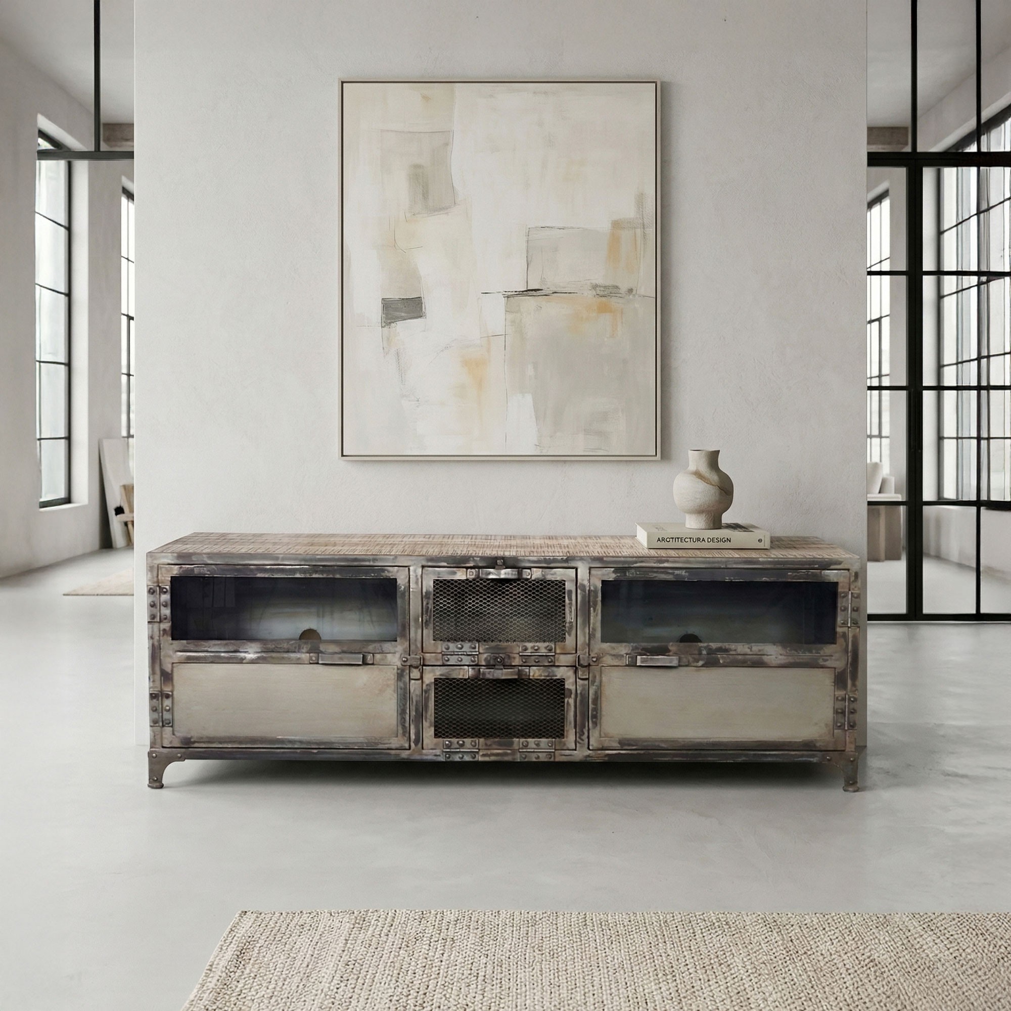 Au-delà de son aspect pratique, ce meuble TV industriel présente des qualités de fabrication indéniables, notamment grâce à l'utilisation de matériaux haut de gamme. La fabrication est artisanale et chaque meuble est unique.