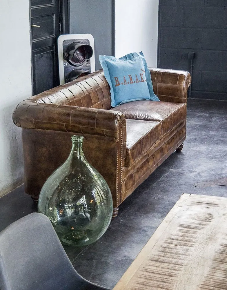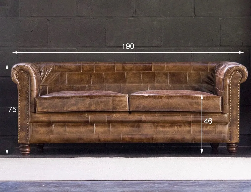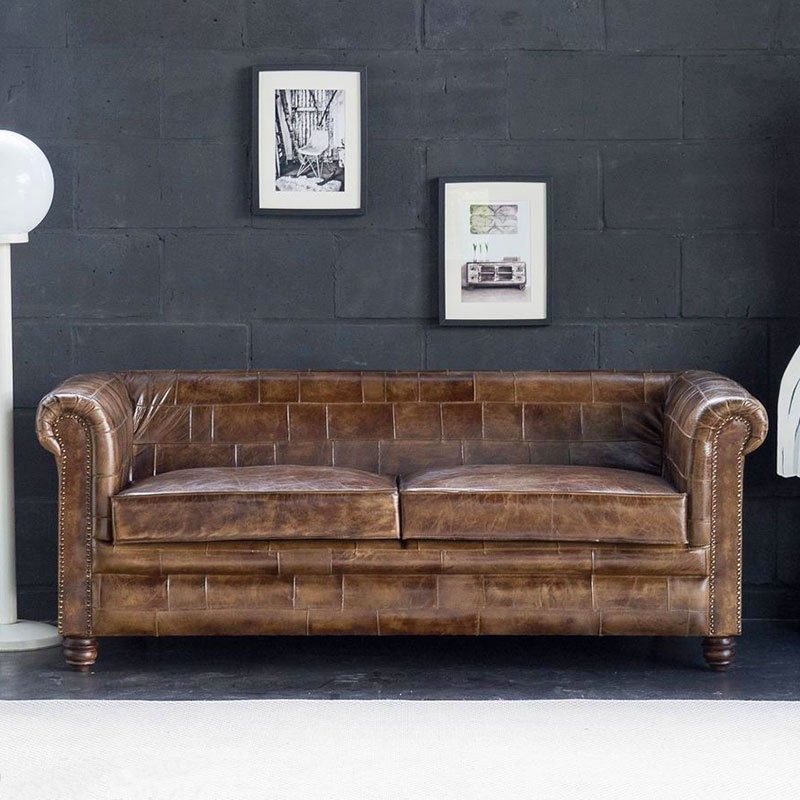 Canapé chesterfield en cuir patchwork 3 places