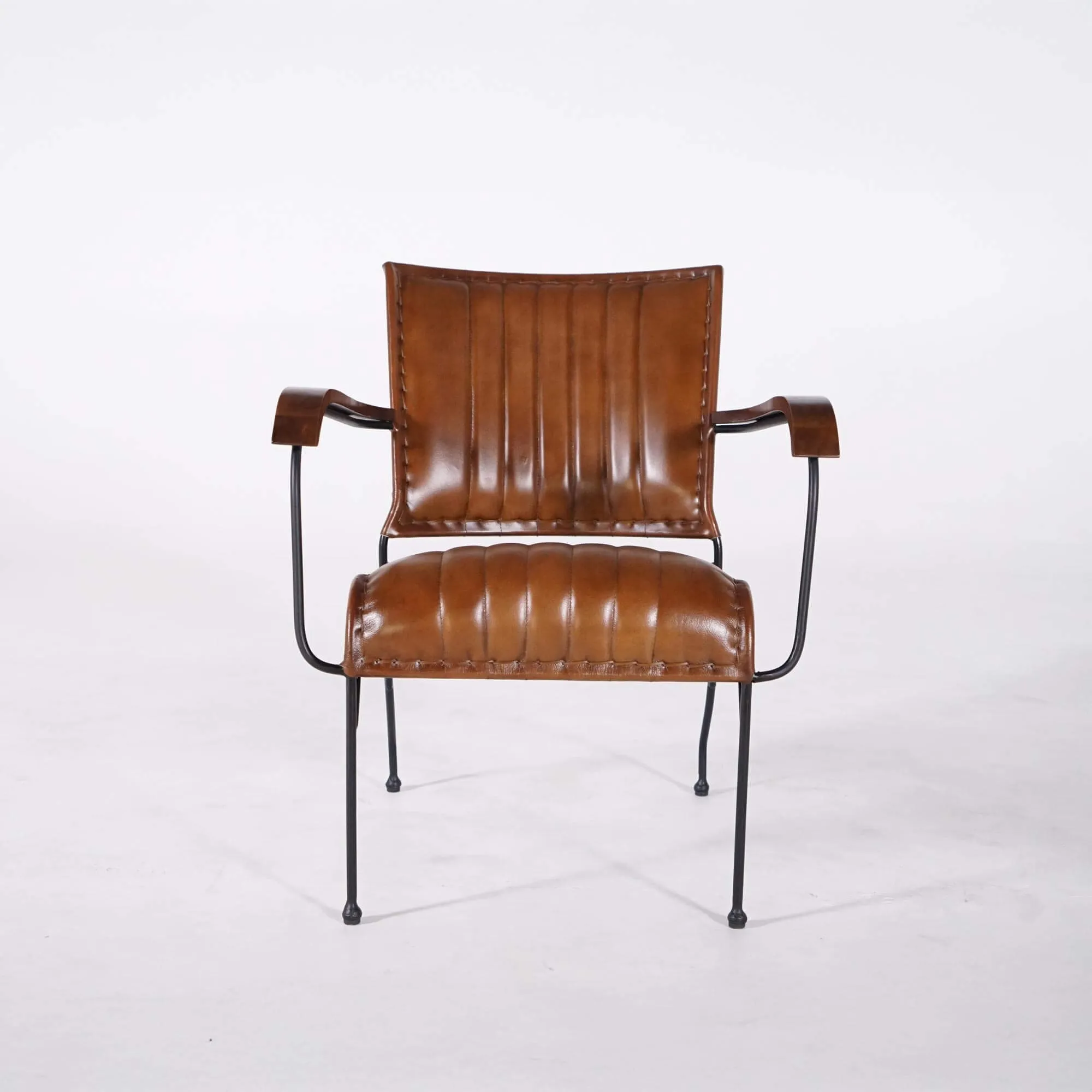 Voici un Fauteuil vintage en cuir marron original qui s’intègre parfaitement dans un intérieur vintage, voire industriel. Le siège du fauteuil est recouvert d’un cuir de buffle pleine fleur de haute qualité couleur cognac et légèrement patiné. La finition des surpiqûres apparentes sur le cuir donne au rembourrage de l’assise et du dossier un look unique et très original. Quant aux accoudoirs en métal, ils sont recouverts d’un joli bois teinté, ce qui apporte une touche chaleureuse au fauteuil. Les pieds en métal sont finement dessinés et donnent au fauteuil un aspect de légèreté et de robustesse à la fois. Le fauteuil vintage en cuir Cosy a comme particularité d’avoir une assise légèrement inclinée vers l’arrière. Cette position permet d’avoir les genoux surélevés et donc le dos en totale décontraction pour un vrai moment de détente.