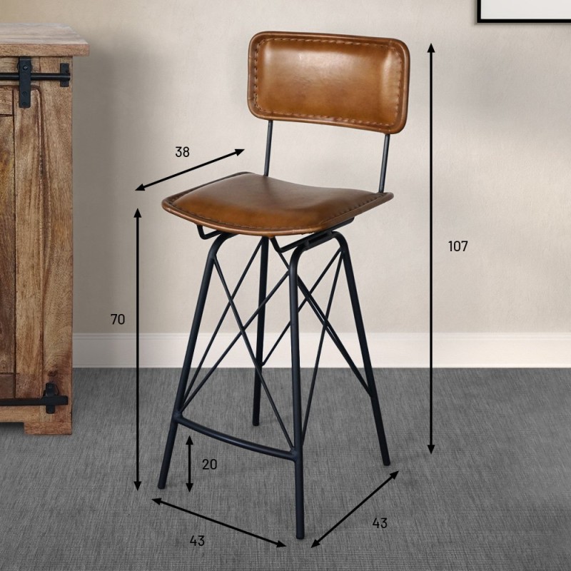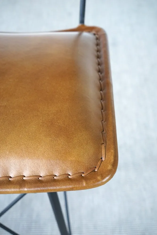 A propos des finitions, le dossier et le siège sont recouverts d’un cuir de buffle lisse et soyeux, soigneusement patiné. Les surpiqûres apparentes sont du plus bel effet, elles reflètent une qualité de finition irréprochable. Que ce soit dans un « espace bar », près d’un Jukebox ou dans une cuisine américaine, la chaise de bar en cuir marron DESIGN est la chaise qu’on a envie de s’offrir pour son esthétique et son design unique. Elle est sans conteste un bel objet de décoration facile d’entretien. Laissez-vous séduire par cette chaise de bar qui trouvera forcément une place dans votre intérieur ! Hauteur de l'assise: 72 cm