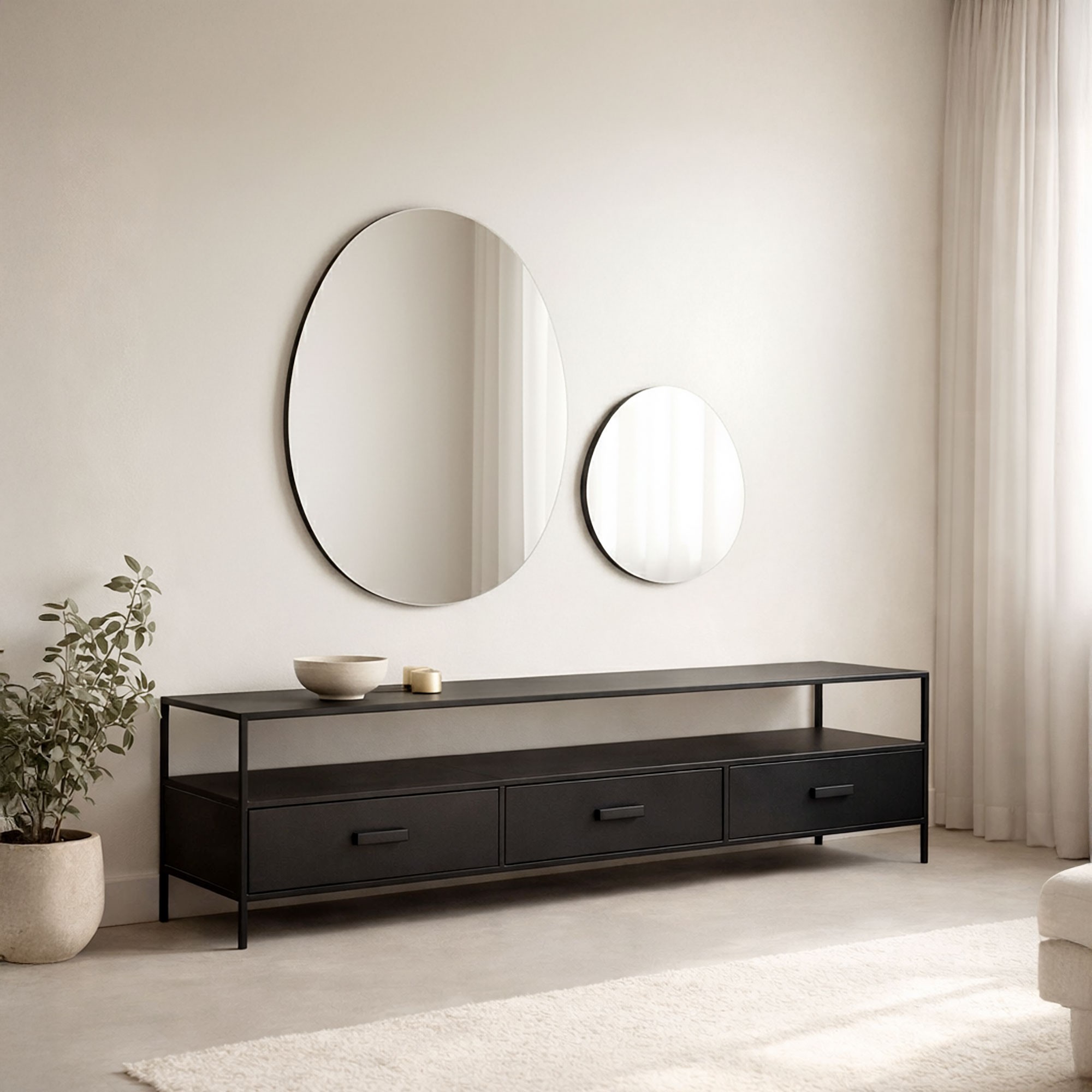 New York Meuble TV industriel métal noir 3 tiroirs - New York