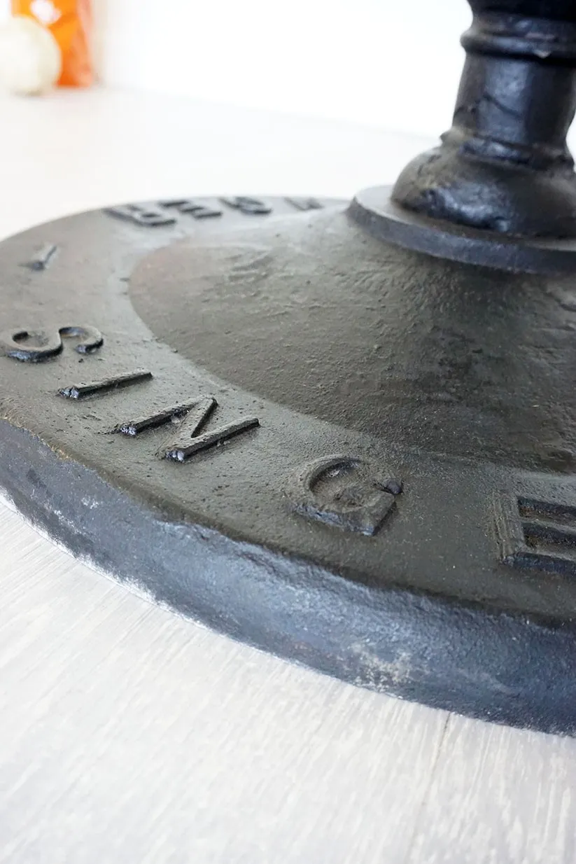 Son piétement en fonte bénéficie d’une superbe finition de couleur noire, et est accroché au centre du plateau, ce qui offre une assise au confort optimal puisqu’il n’y a pas de pieds dans le chemin.