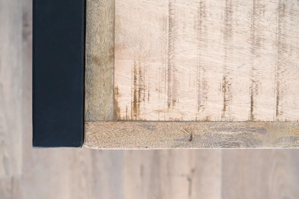 Reposant sur un piètement métallique ouvert, il met en lumière les variations de teintes naturelles du bois brut tout apportant une touche de modernité et d’élégance. Grâce au cadre en acier renforcé, le support de télévision est extrêmement stable.