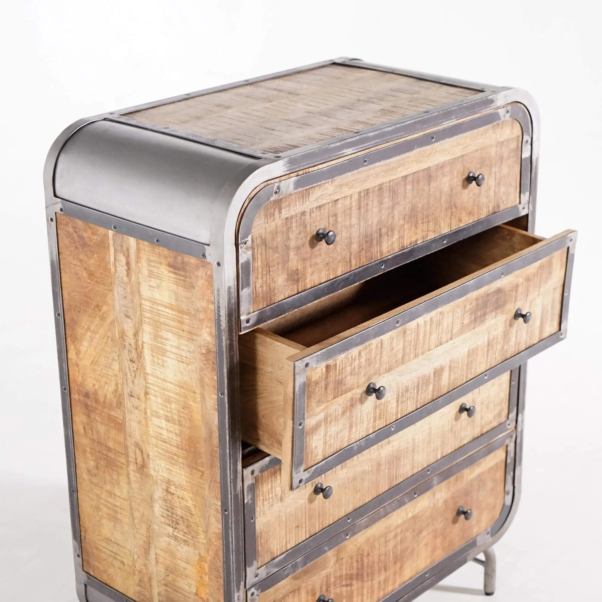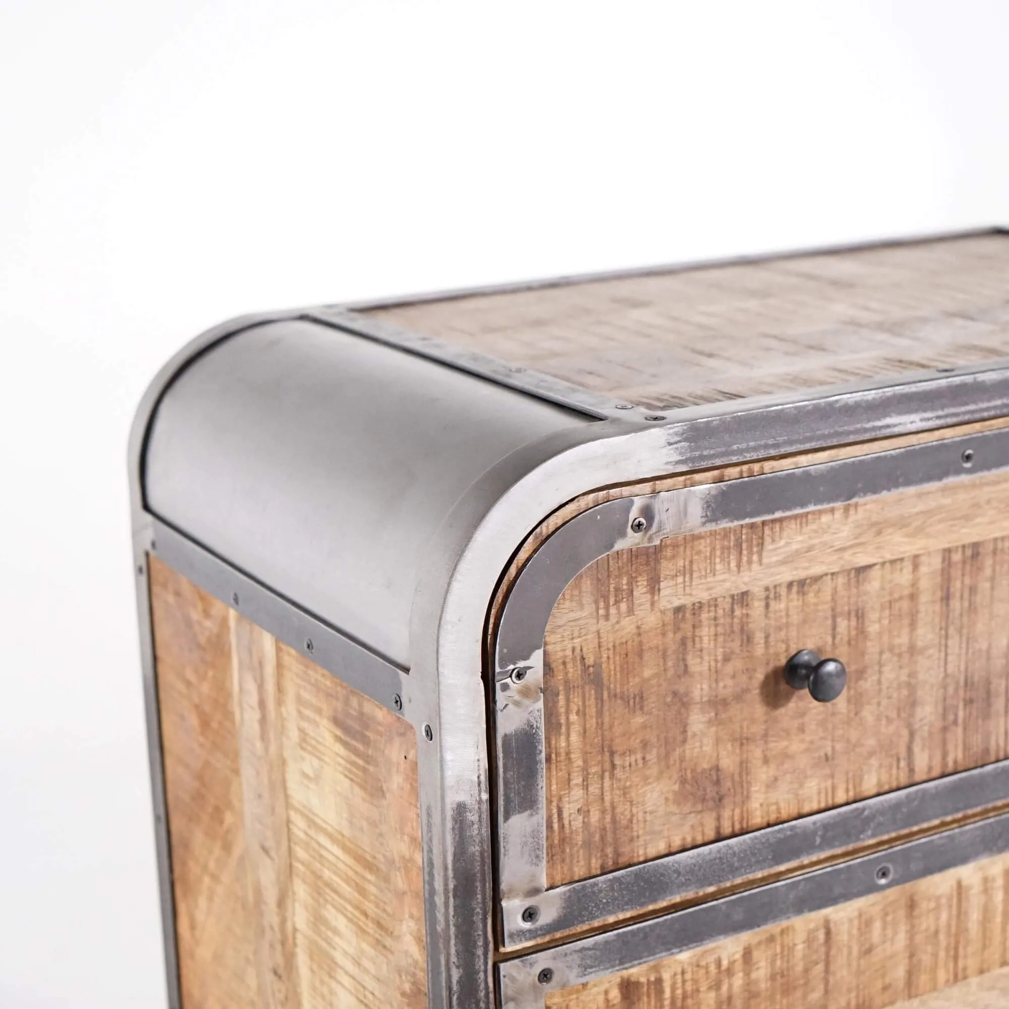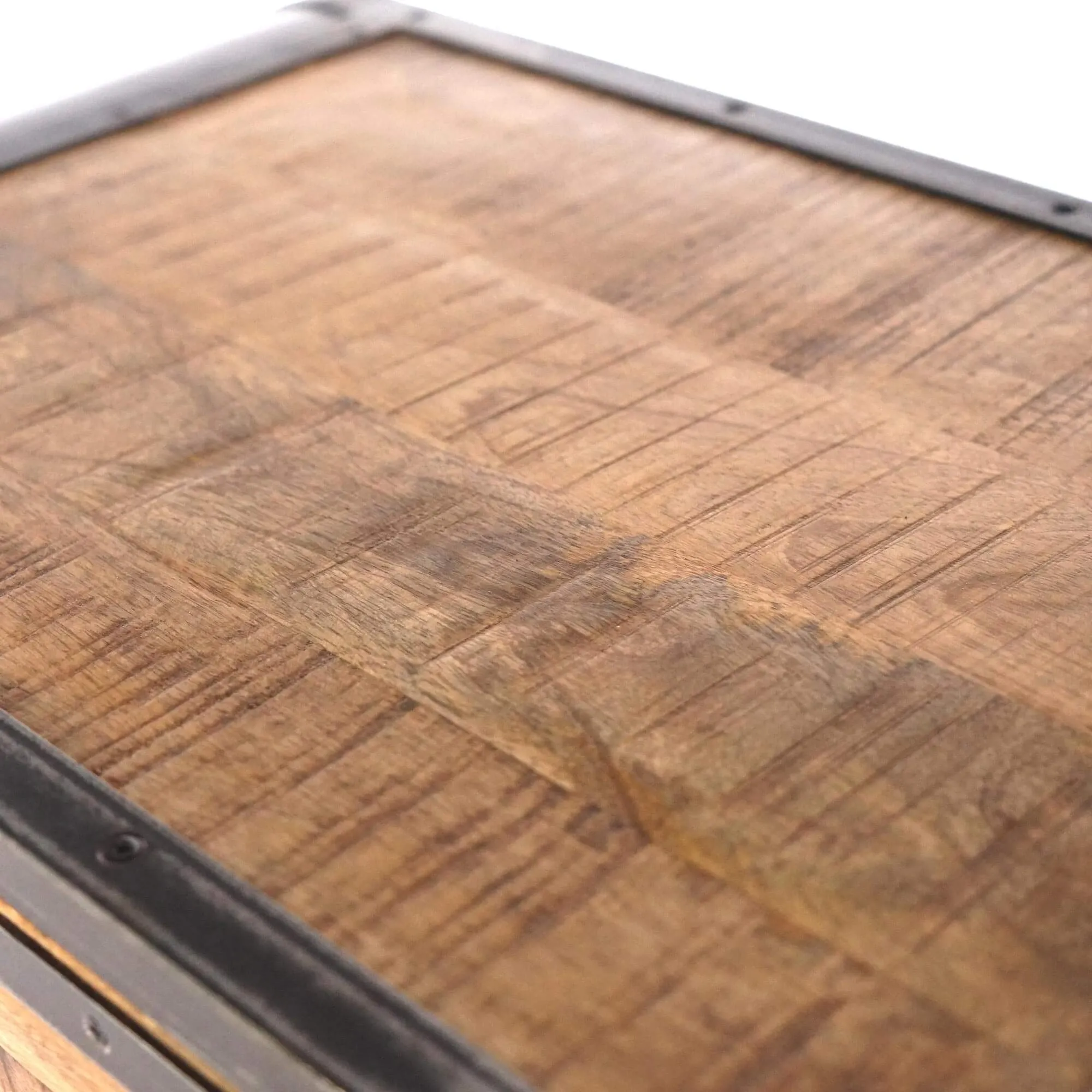 Fabriqué avec soin en bois de manguier massif et en métal de haute qualité, le petit buffet Manchester incarne l'élégance du style industriel. Le bois de manguier, apprécié pour sa solidité et sa résistance, confère à ce meuble une beauté naturelle et une durabilité incomparable. Les finitions en métal, qui soulignent les contours et ornent les poignées des quatre tiroirs, ajoutent une touche de contraste visuel élégant qui rend ce petit buffet unique en son genre.