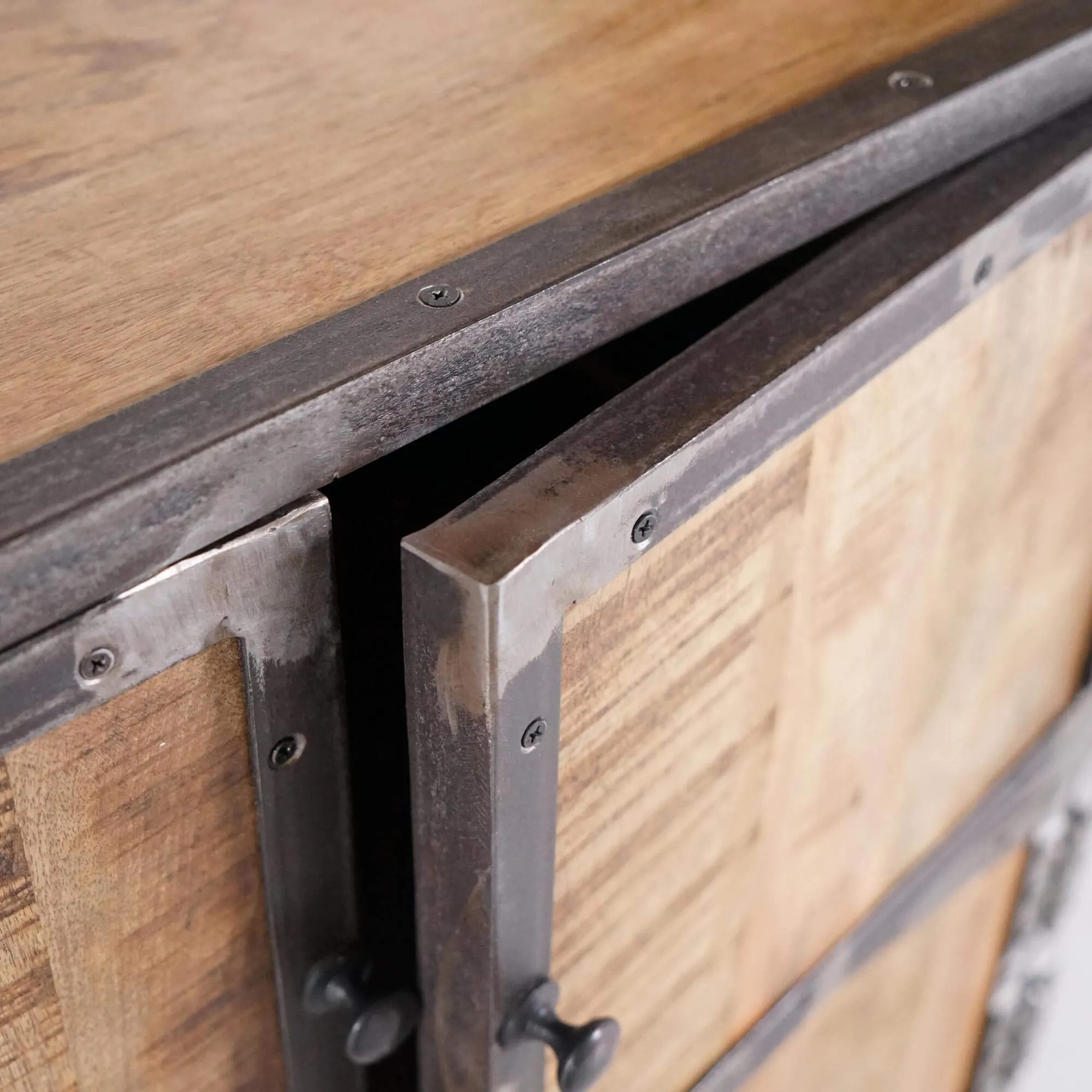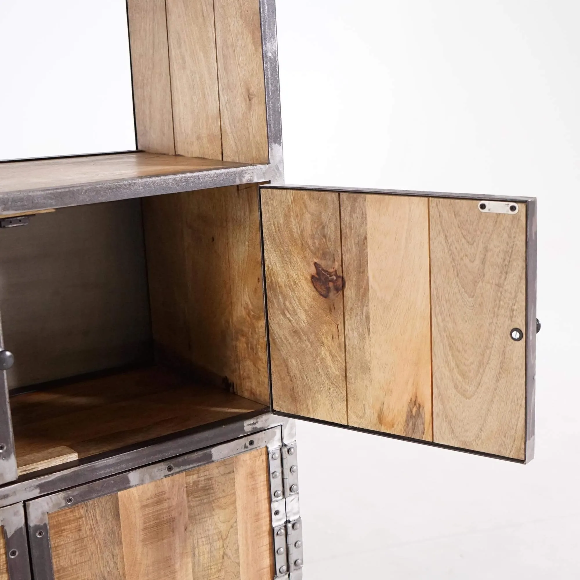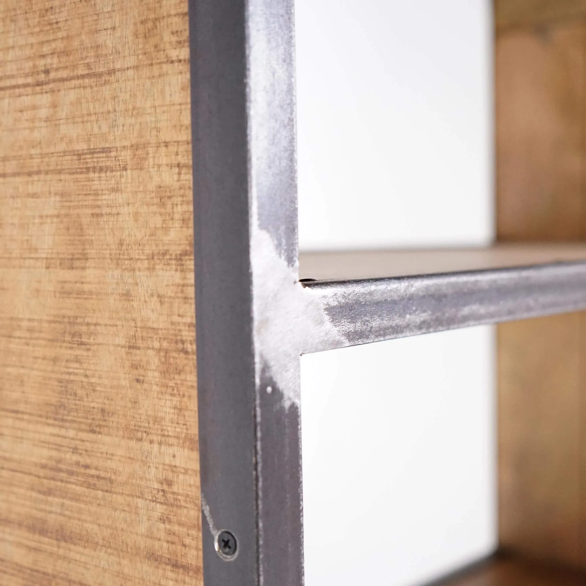 Chaque élément de ce vaisselier a été minutieusement conçu pour capturer l'essence brute du style industriel. Les panneaux en bois de manguier, avec leur texture naturelle et leur teinte riche, se marient harmonieusement avec le métal naturel à l'aspect brut, créant un contraste visuel saisissant qui évoque le charme des anciennes usines réhabilitées.