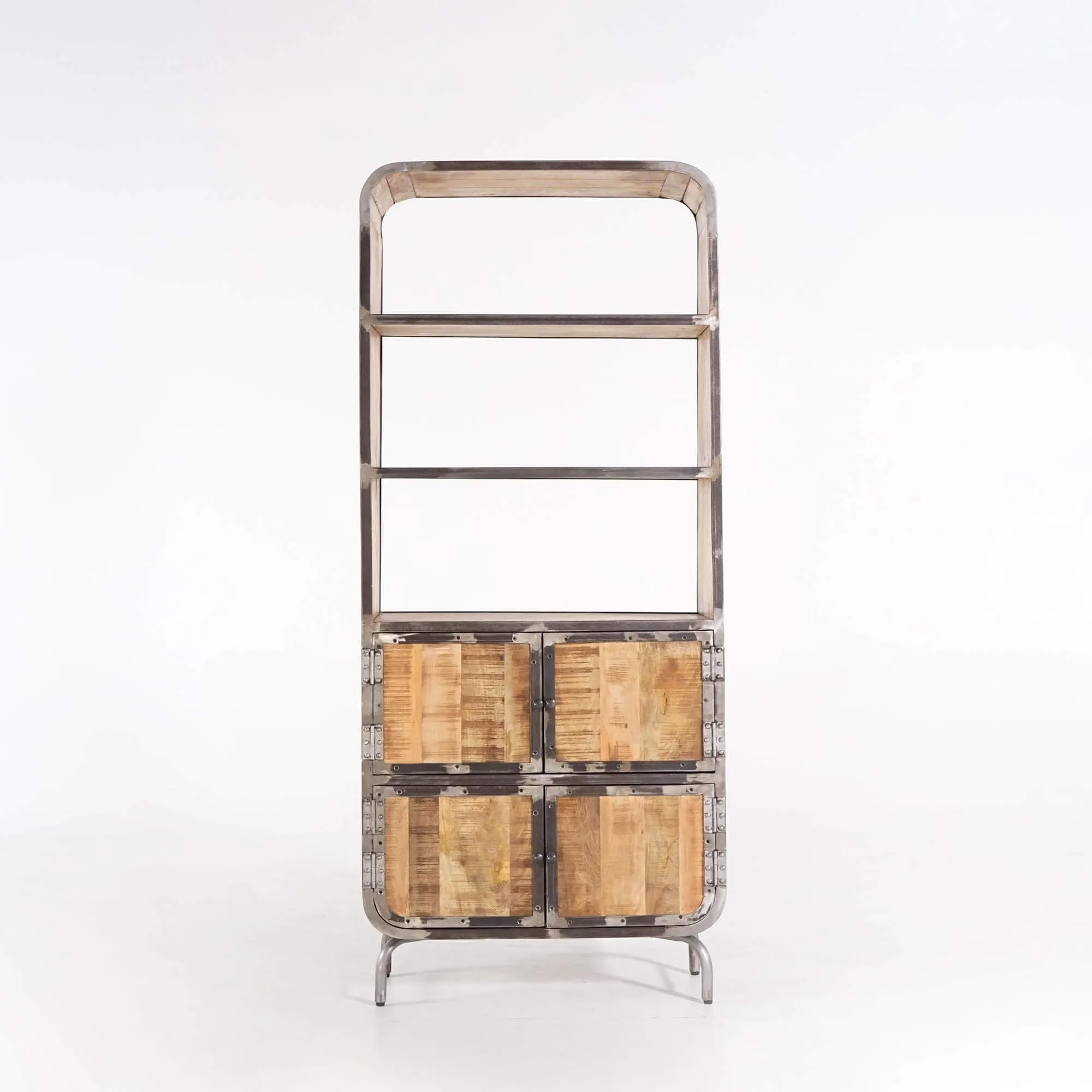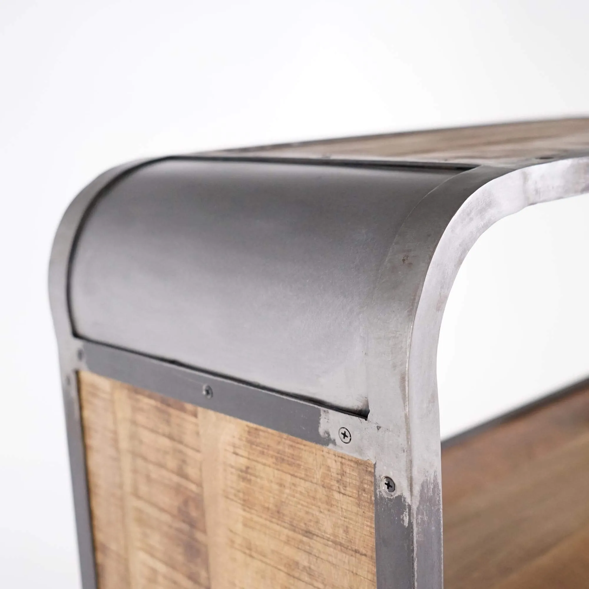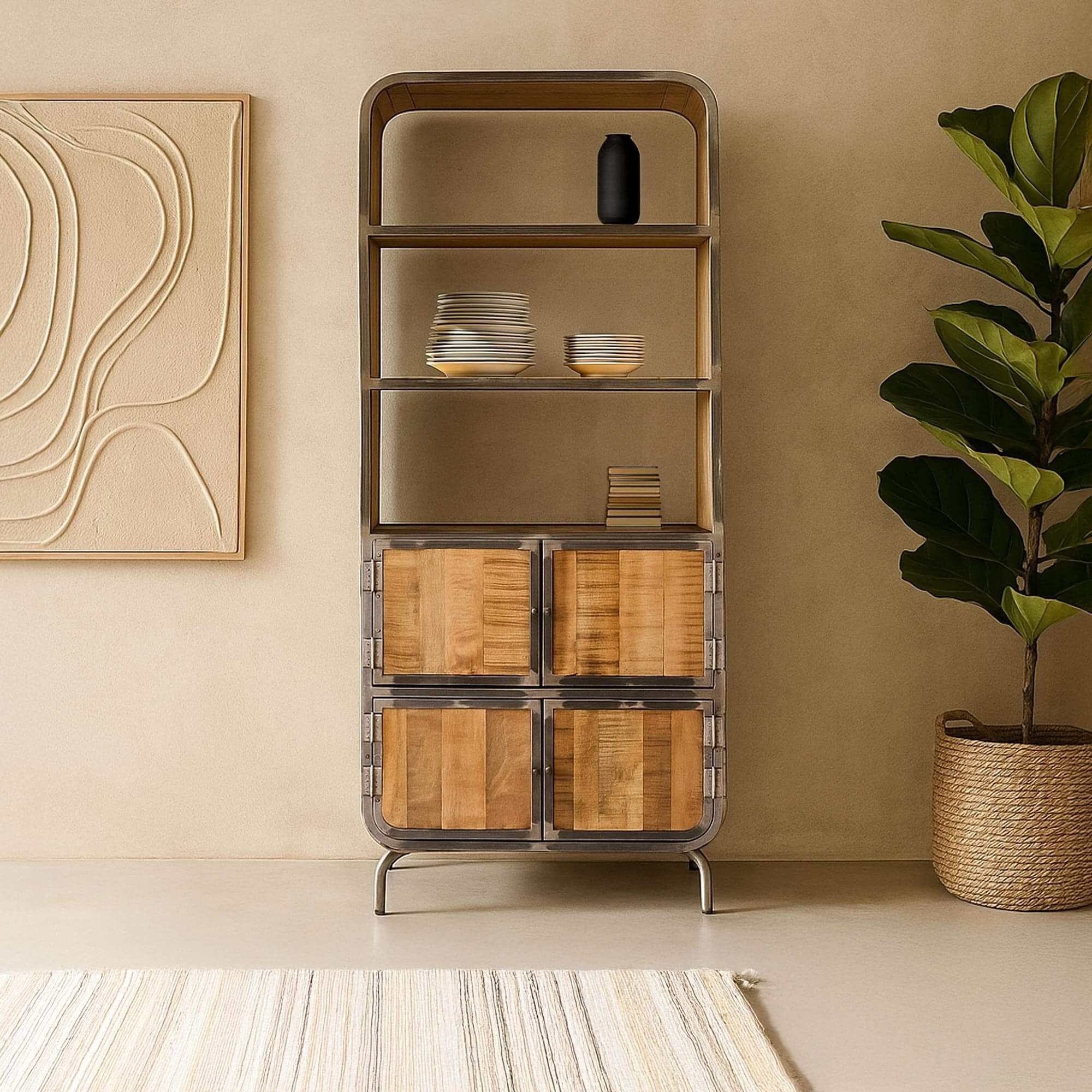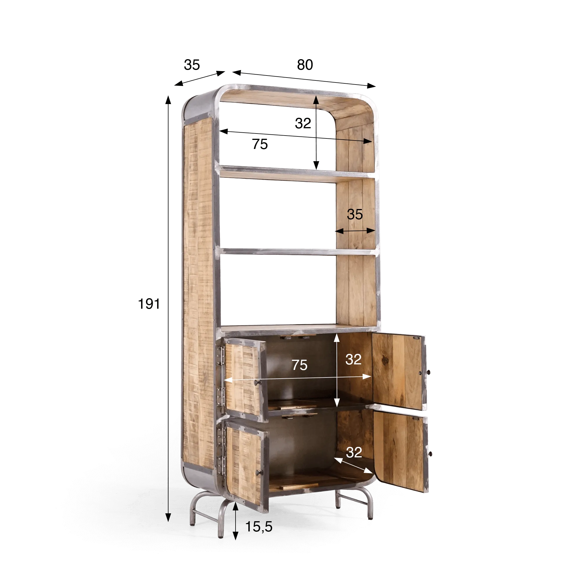 Chaque élément de ce vaisselier a été minutieusement conçu pour capturer l'essence brute du style industriel. Les panneaux en bois de manguier, avec leur texture naturelle et leur teinte riche, se marient harmonieusement avec le métal naturel à l'aspect brut, créant un contraste visuel saisissant qui évoque le charme des anciennes usines réhabilitées.