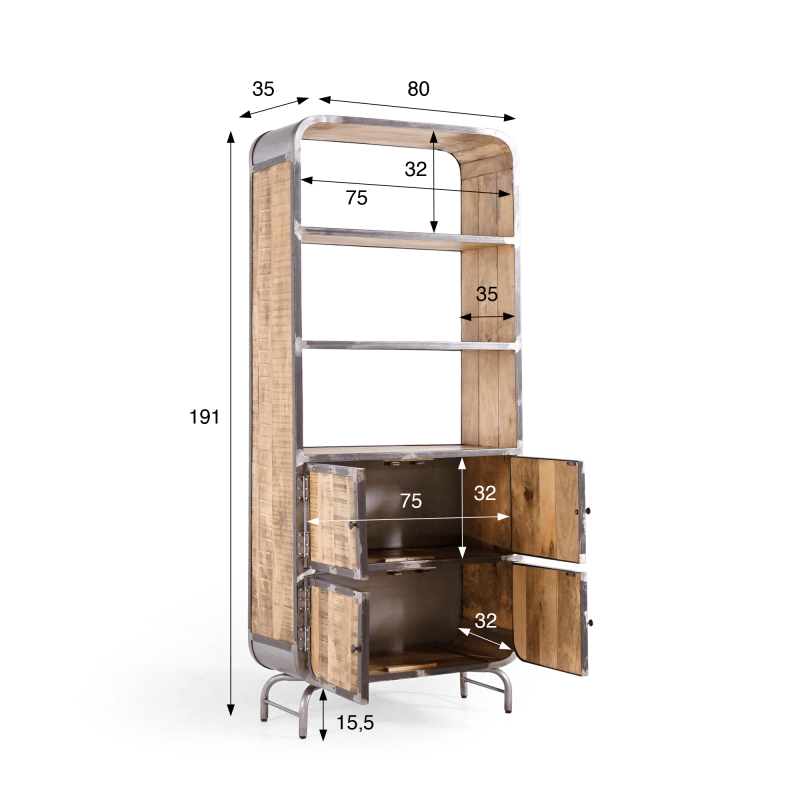 Plongez dans l'univers du style industriel avec notre remarquable vaisselier industriel de la collection Manchester. Mesurant 190 cm de hauteur, 80 cm de largeur et 35 cm de profondeur, ce vaisselier incarne l'équilibre parfait entre le design industriel robuste et l'élégance du bois de manguier.