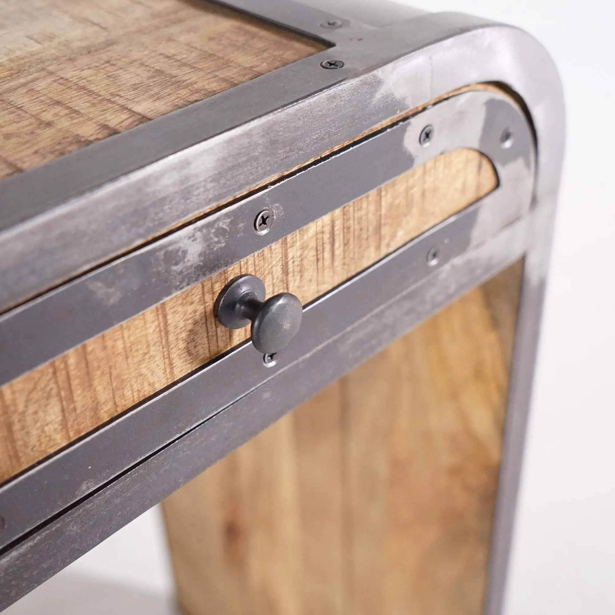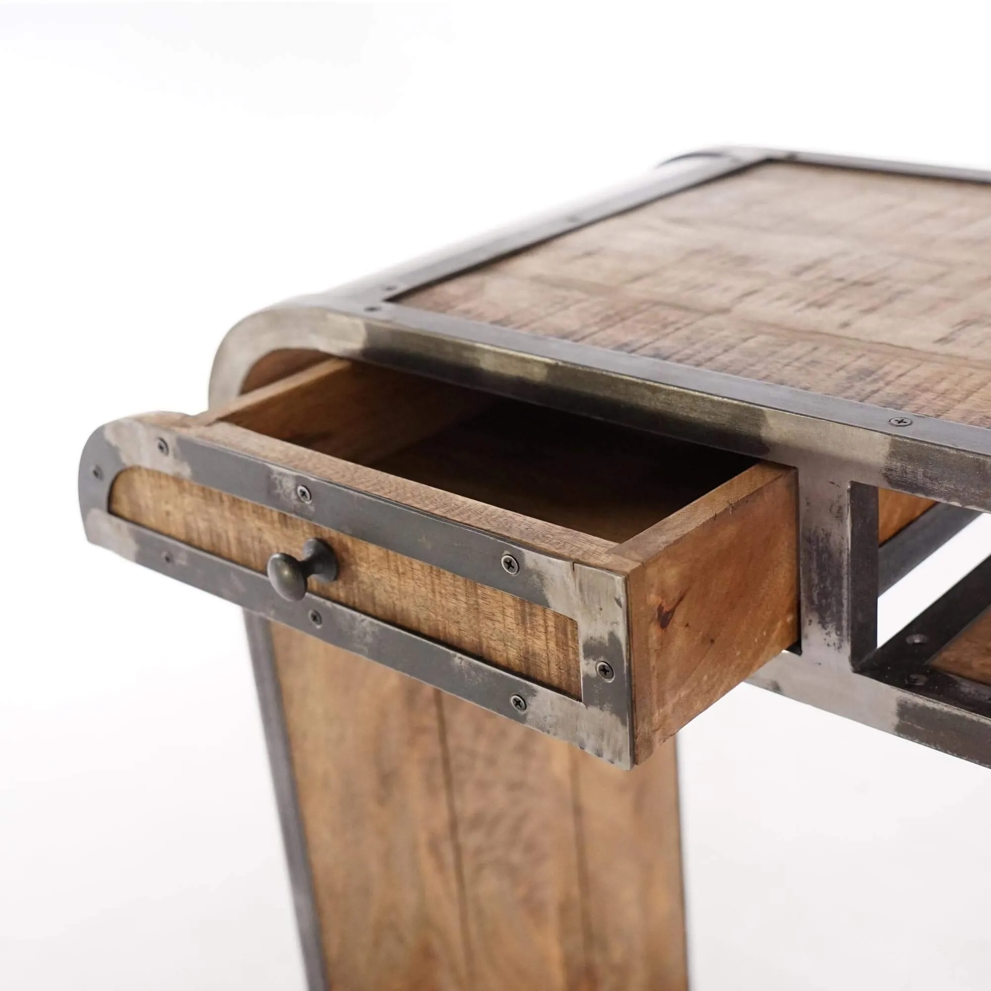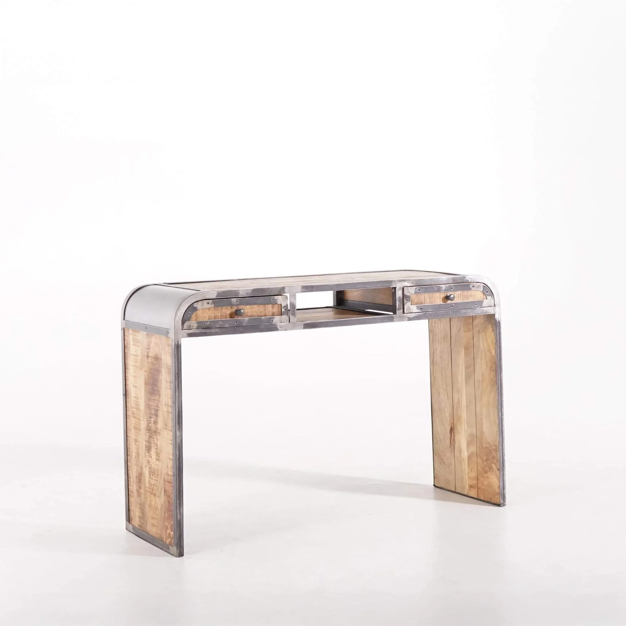 Les finitions en métal confèrent à la console Manchester une allure sophistiquée et authentique. Les contours du meuble ainsi que les poignées des tiroirs aux extrémités sont en métal, ajoutant une touche de contraste visuel élégant.