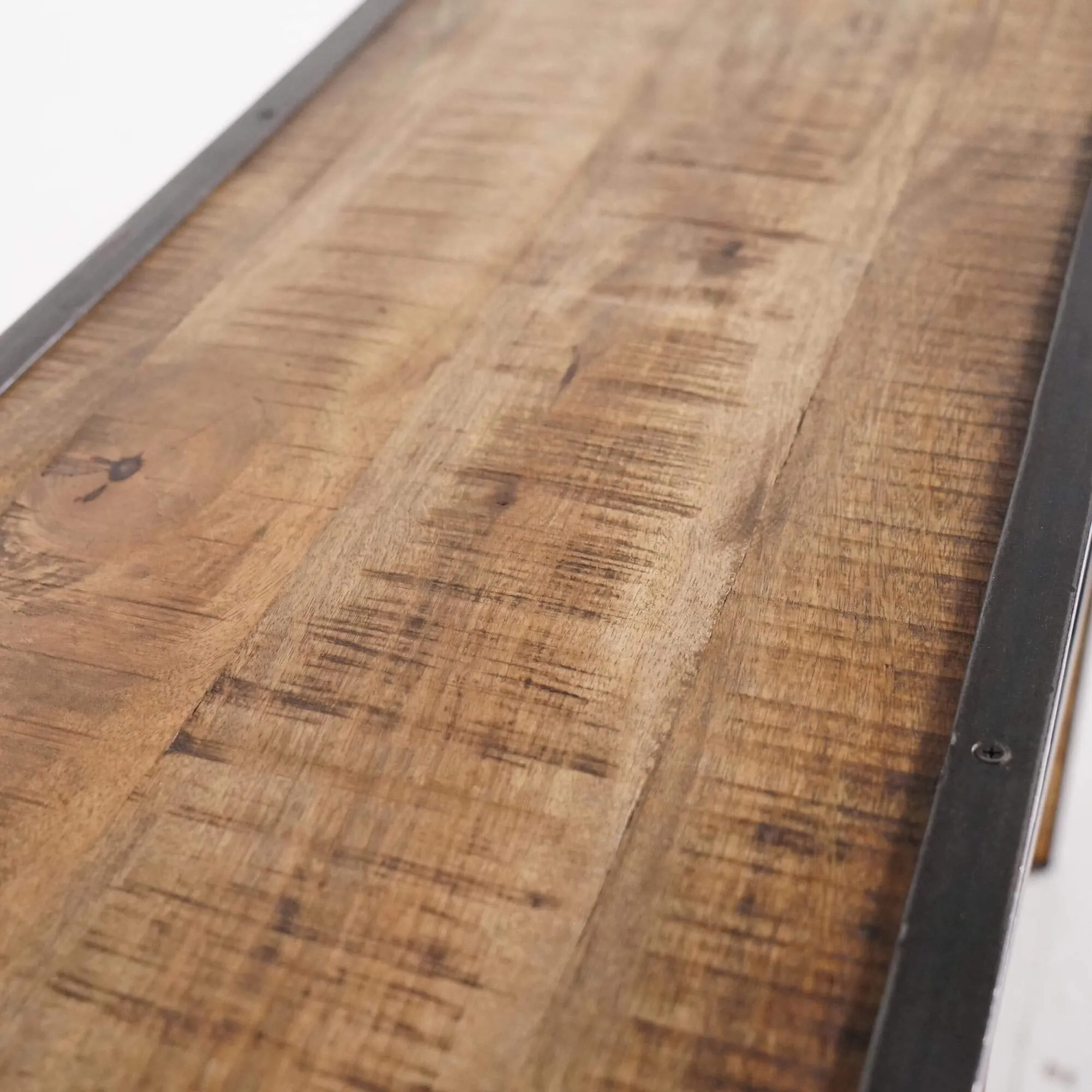 L'entretien de la console en bois de manguier et en métal est simple. Utilisez un chiffon doux légèrement humide pour enlever la poussière et éliminer les taches légères. Évitez l'utilisation de produits chimiques agressifs qui pourraient endommager le bois ou les finitions en métal. En suivant ces simples précautions, vous préserverez la beauté et la qualité de votre console Manchester pendant de nombreuses années.