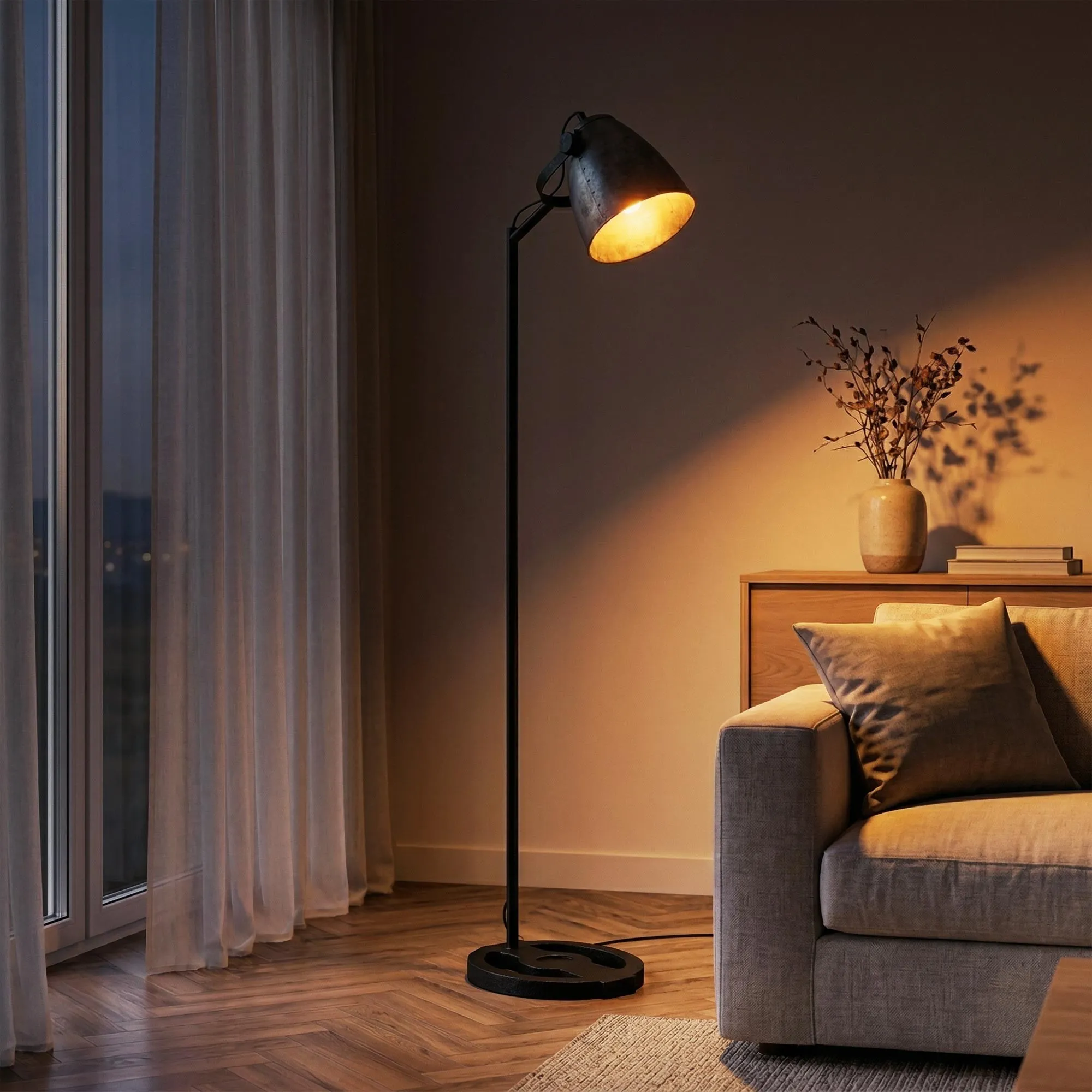 La lampe sur pied industrielle Indiana est un luminaire moderne qui mise sur la simplicité et la mise en valeur du métal recyclé.