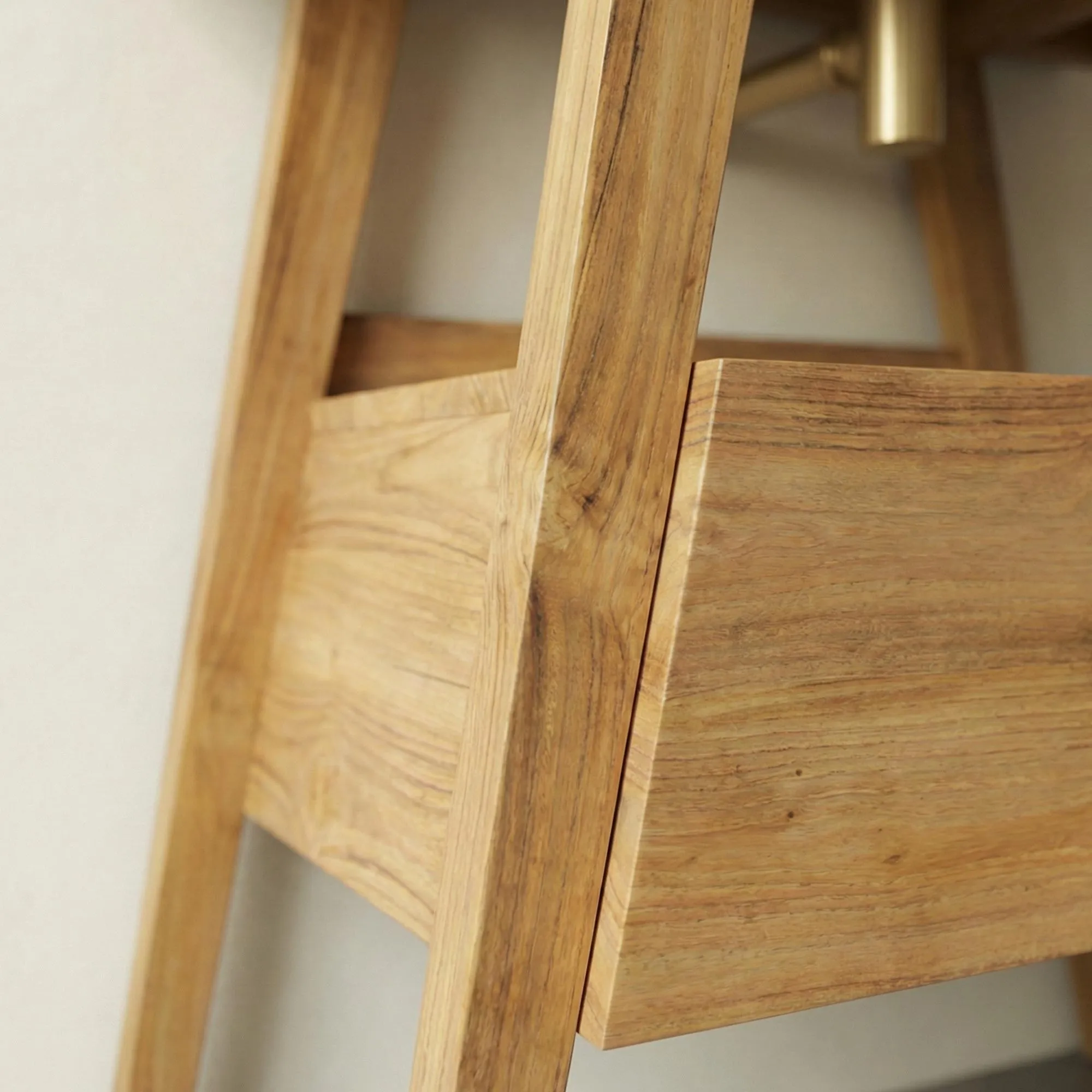Fabriqué avec soin en Teck massif, ce meuble de salle de bain incarne la beauté naturelle et la durabilité du bois exotique. Les finitions en Teck mettent en valeur son aspect authentique et élégant, tandis que la conception unique des pieds en trapèze ajoute une touche de modernité et de sophistication à l'ensemble.