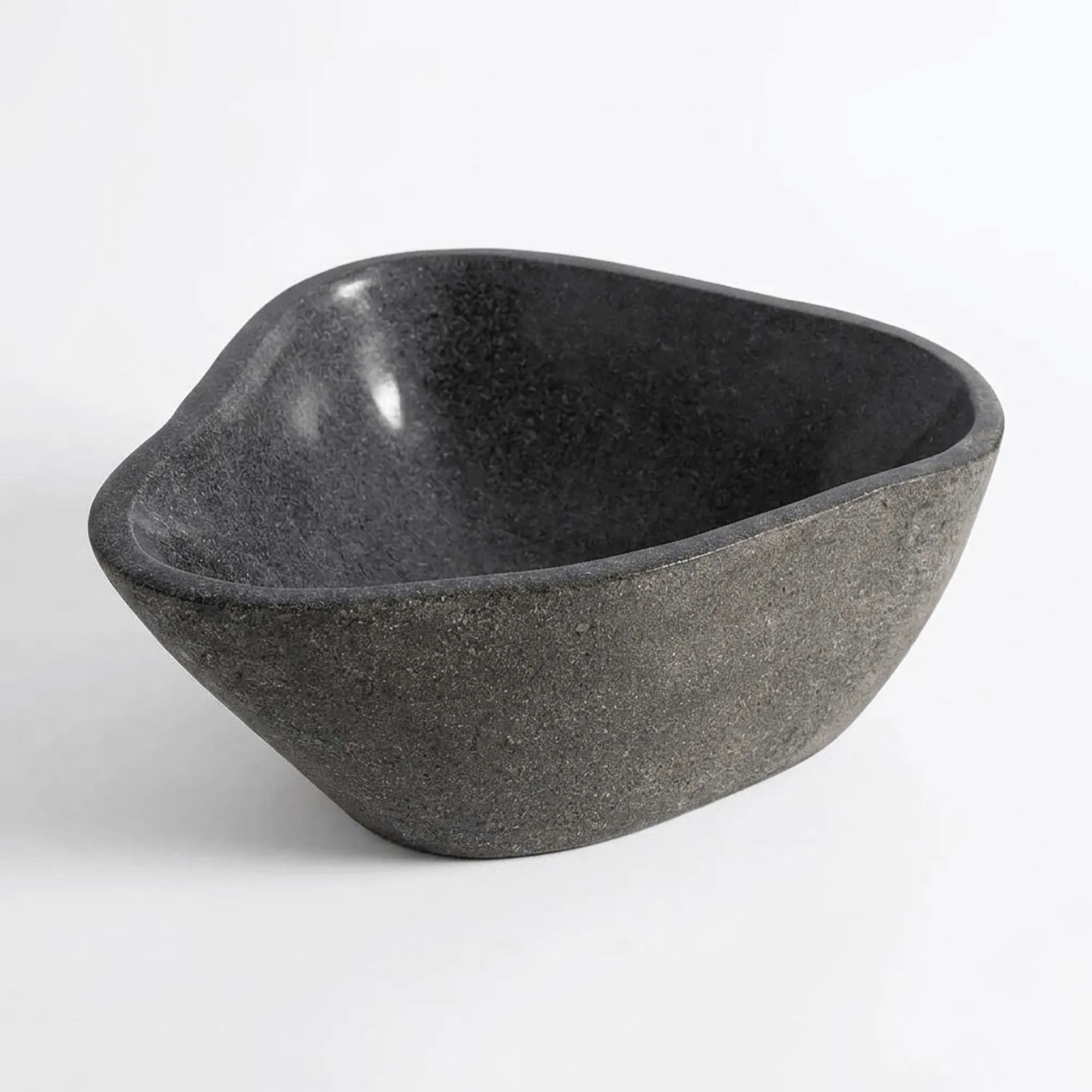Dans la gamme River Stone, découvrez la vasque à poser de forme ovale en pierre naturelle de rivière polie.