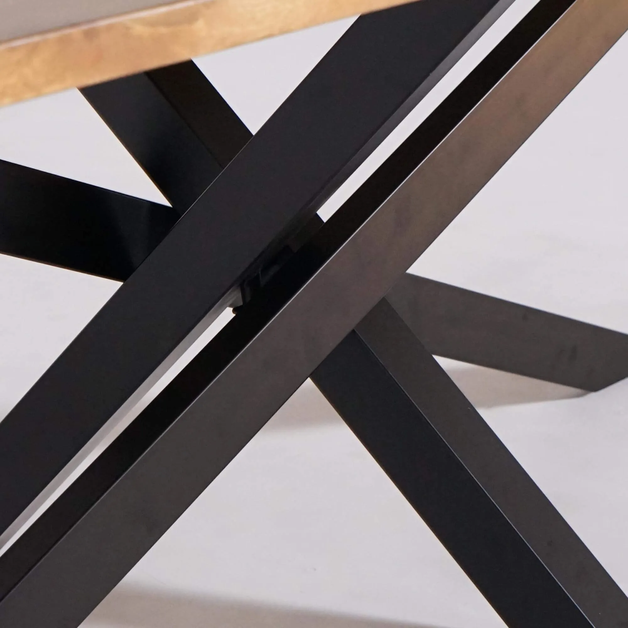 La planche de cette table de salle à manger en bois massif à pied mikado en métal est fabriquée manguier, offrant à la fois une esthétique naturelle et une durabilité exceptionnelle. Chaque planche est unique avec ses propres motifs et grains, ce qui confère à cette table à manger une personnalité authentique. Le bois de manguier est reconnu pour sa résistance et sa longévité, garantissant que cette table vous accompagnera pendant de nombreuses années.