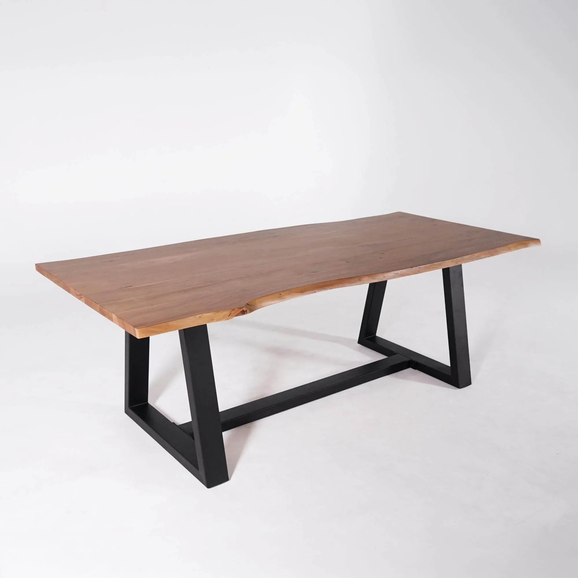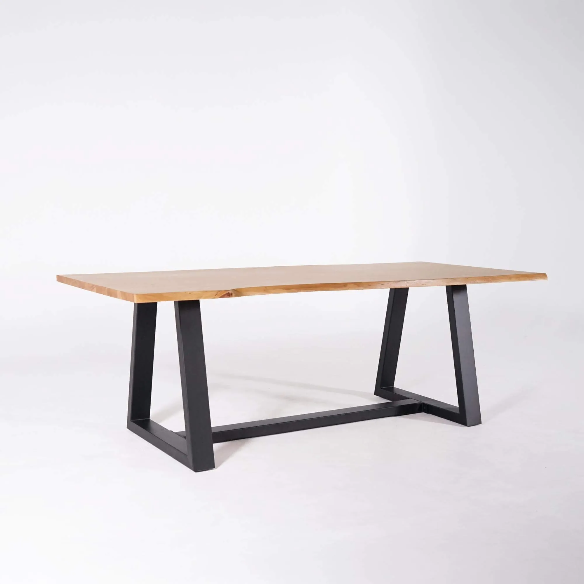 Pour concevoir cette table à manger en bois massif, nous avons sélectionné l’acacia pour la richesse de son veinage et la chaleur de ses nuances miel à brun doré. Au toucher, la surface révèle une finition soignée, douce et parfaitement maîtrisée. Les variations de teinte, les nœuds discrets et les lignes du fil du bois captent la lumière et animent la matière. Nous sommes particulièrement fiers de cet équilibre entre authenticité brute et précision d’usinage.