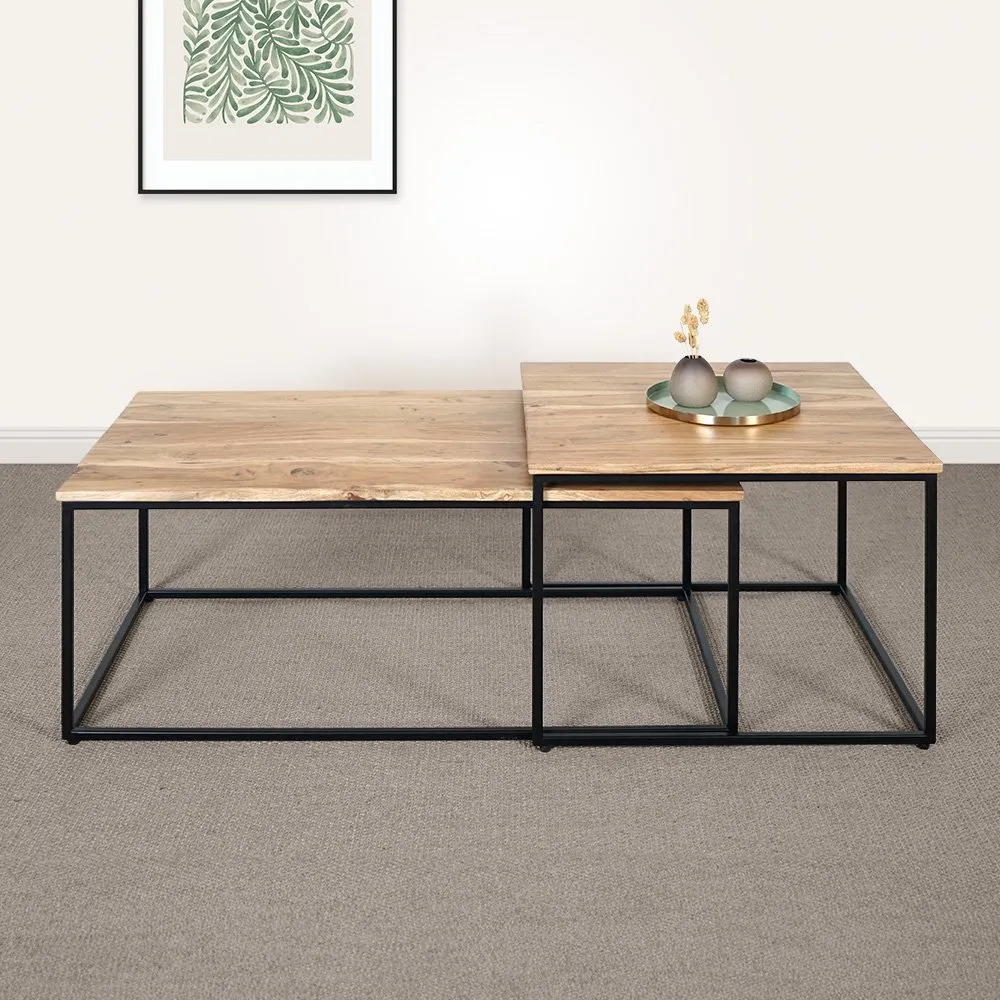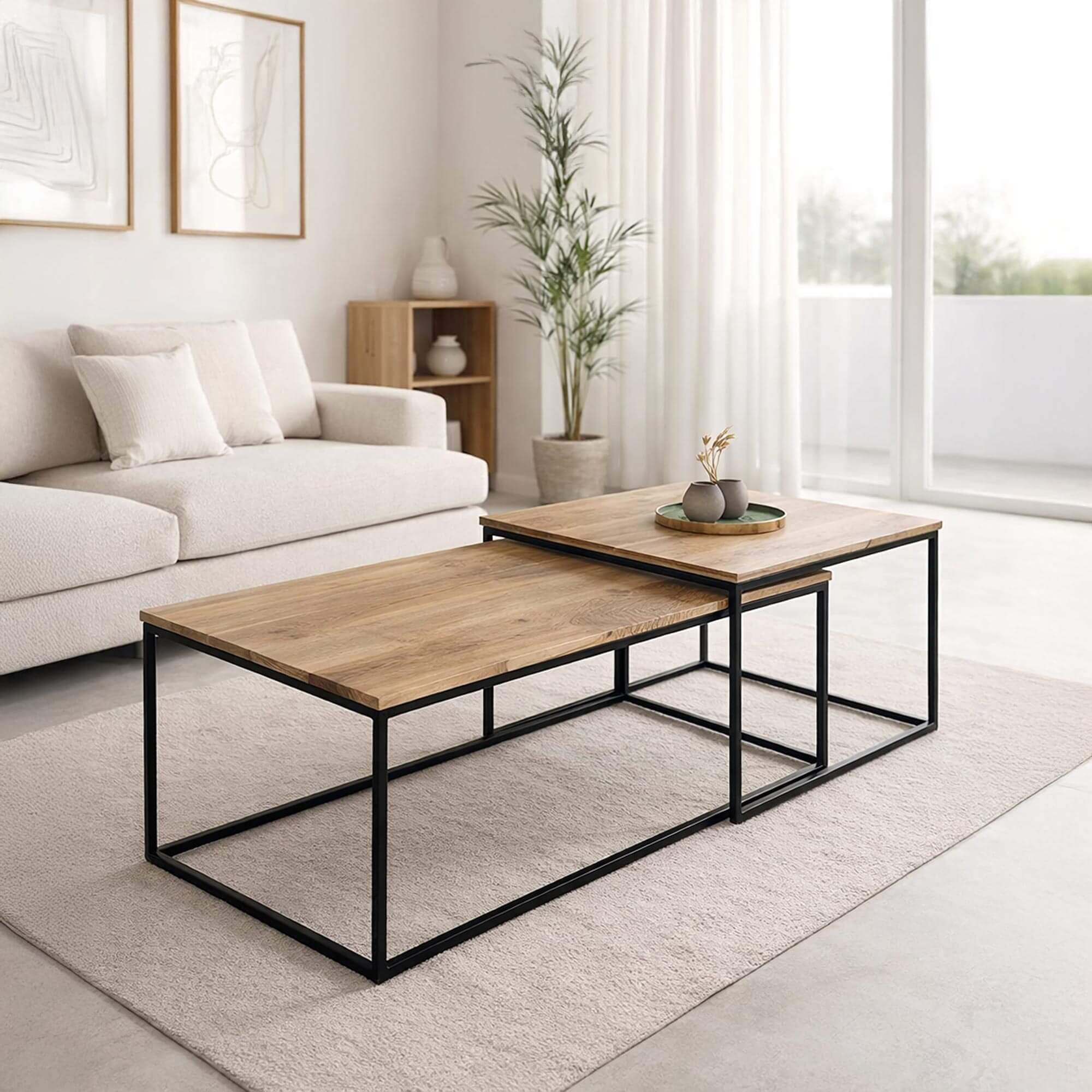 Tables basses gigognes avec plateau en bois massif et structure en métal