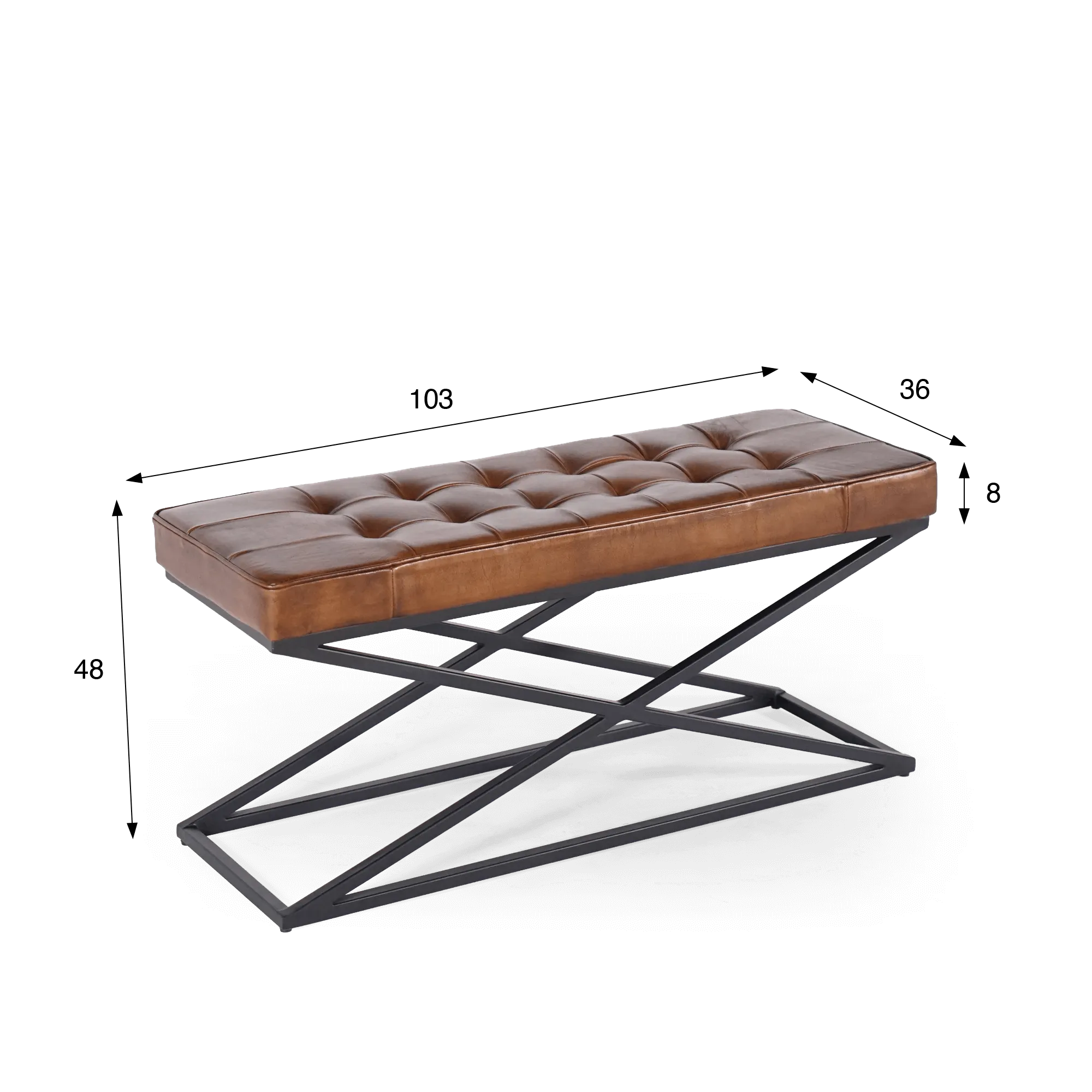 Banc en cuir naturel et métal - Clay