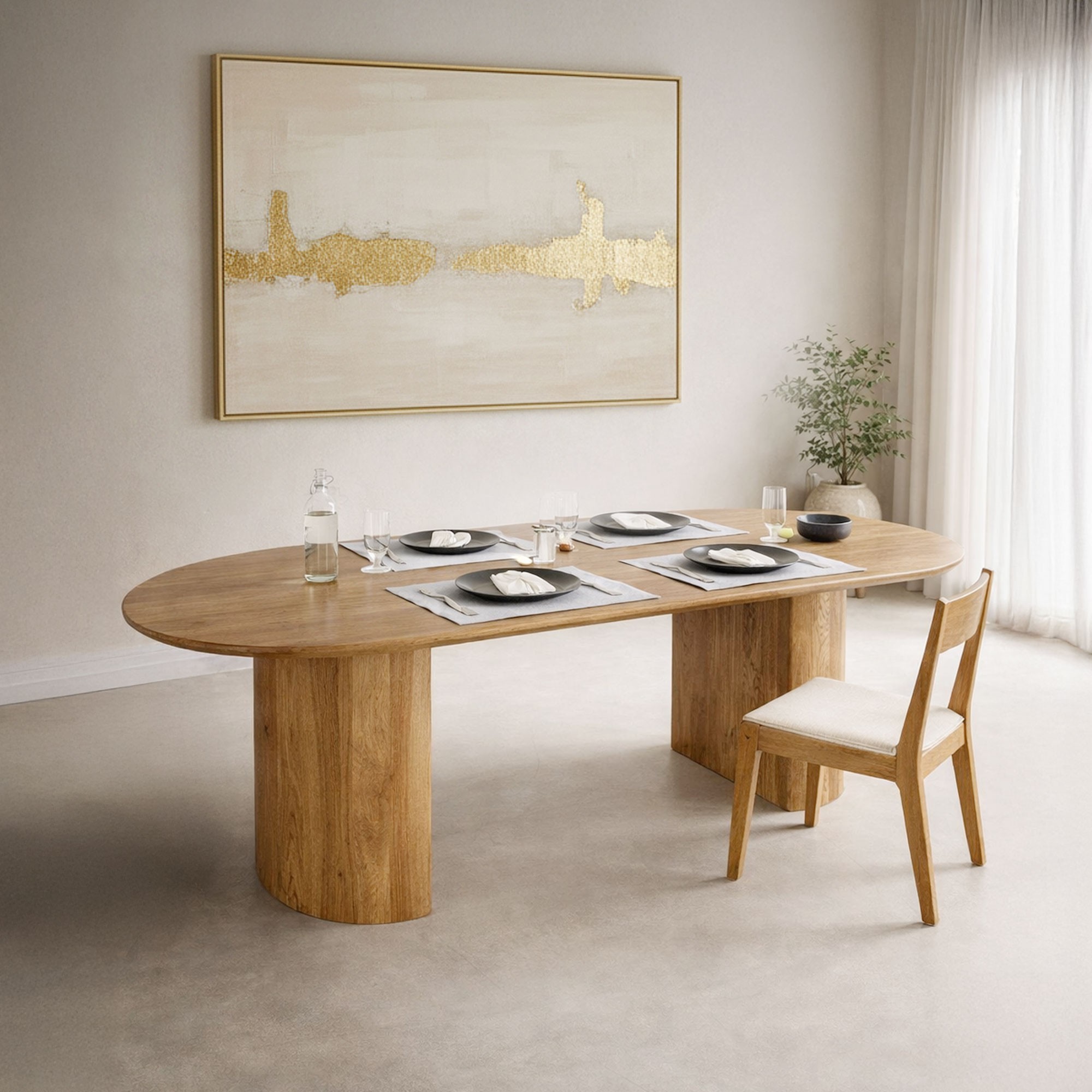 Optez pour cette table contemporaine et créez un espace de repas qui reflète l'élégance et la simplicité. Sa forme ovale unique et ses pieds en demi-cercles en font une pièce maîtresse qui attirera tous les regards dans votre salle à manger.