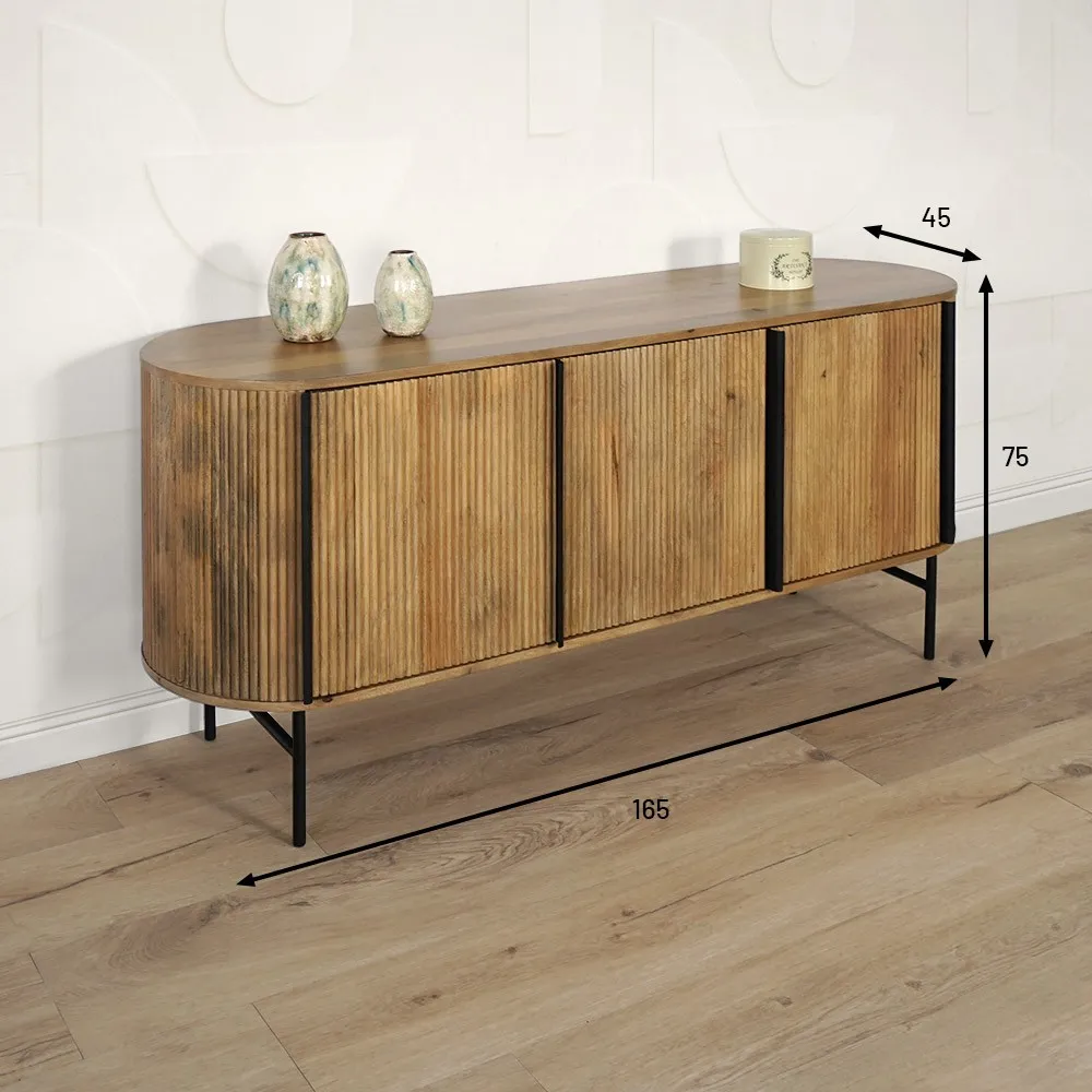Conçu avec du bois massif de manguier, ce buffet évoque la robustesse et la durabilité qui sont caractéristiques de ce matériau d'exception. Le manguier est reconnu pour sa résistance naturelle, tout en offrant une texture raffinée et une allure lumineuse qui ajoutent une touche de sophistication à tout espace intérieur.
