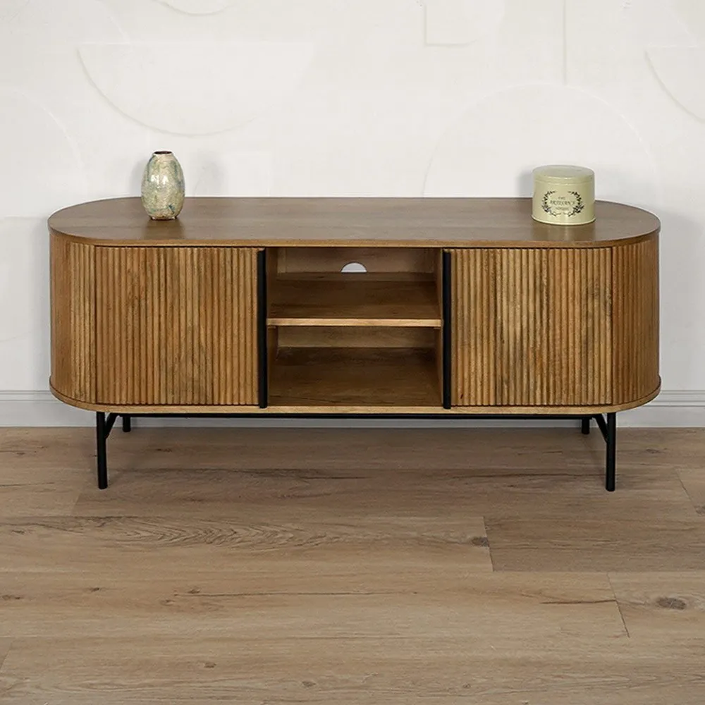 Plongez dans l'élégance contemporaine avec le meuble TV en bois massif de la collection Thanais. Mesurant 137 cm de largeur, 55 cm de hauteur et 40 cm de profondeur, ce meuble incarne parfaitement la fonctionnalité et l’esthétique.