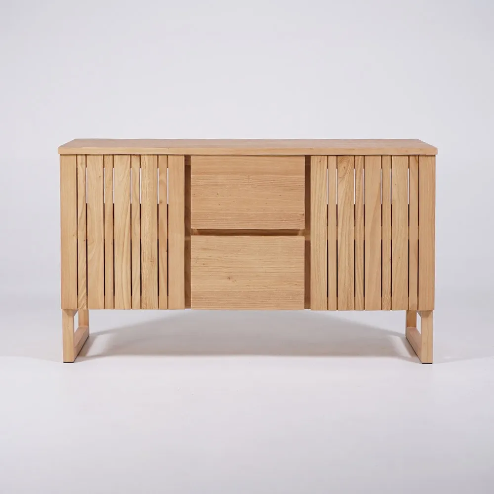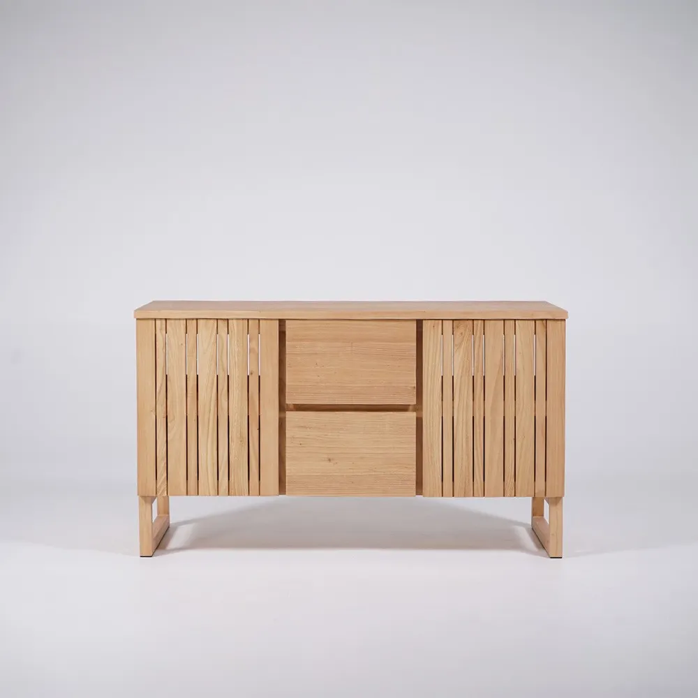 Ce meuble a été pensé pour s’adapter aux exigences de la vie moderne tout en valorisant le savoir-faire artisanal. Les deux portes battantes, délicatement ajourées, dissimulent des espaces de rangement généreux et fonctionnels, parfaits pour organiser vos accessoires de toilette. Au centre, les deux tiroirs offrent un accès facile à vos essentiels quotidiens tout en maintenant une esthétique harmonieuse. Chaque détail, des finitions impeccables à la texture naturelle du bois, a été travaillé avec soin pour garantir une qualité durable.