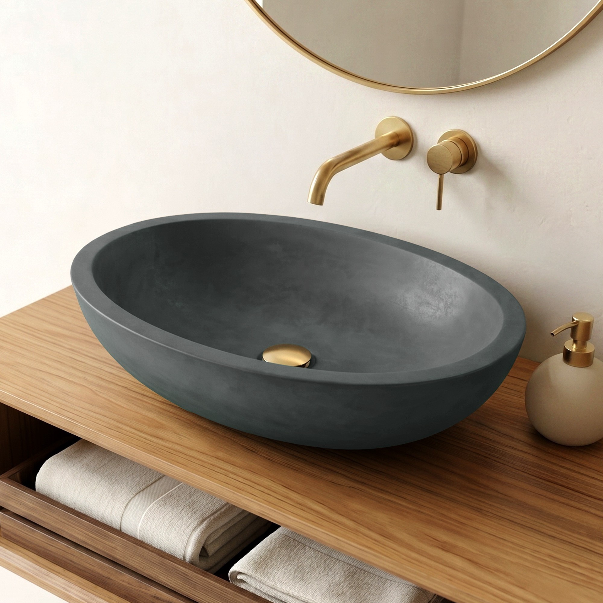 Vasque en béton ovale - Anthracite profond - Raw Blend