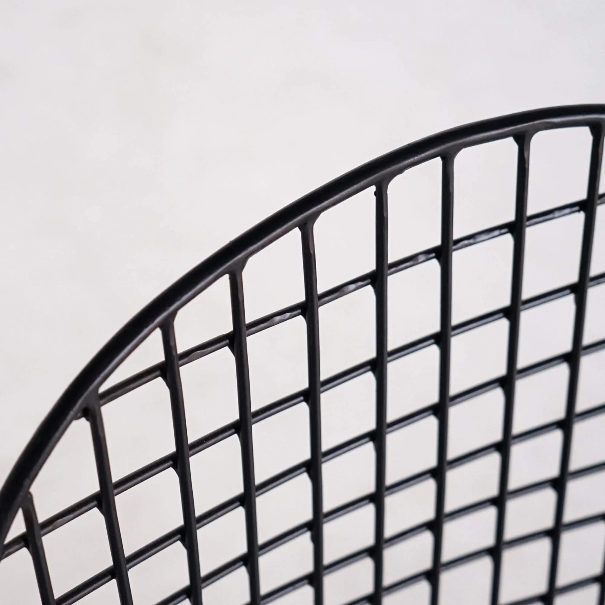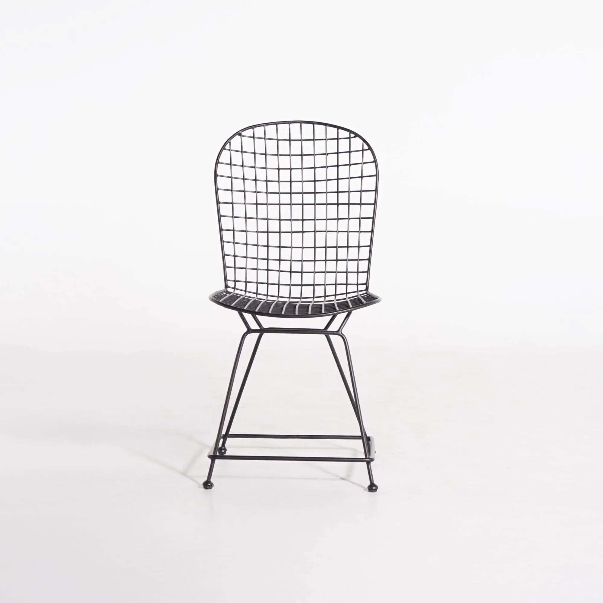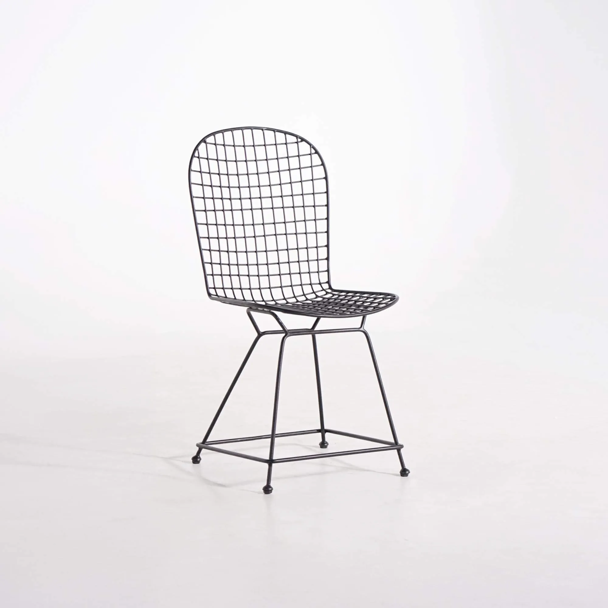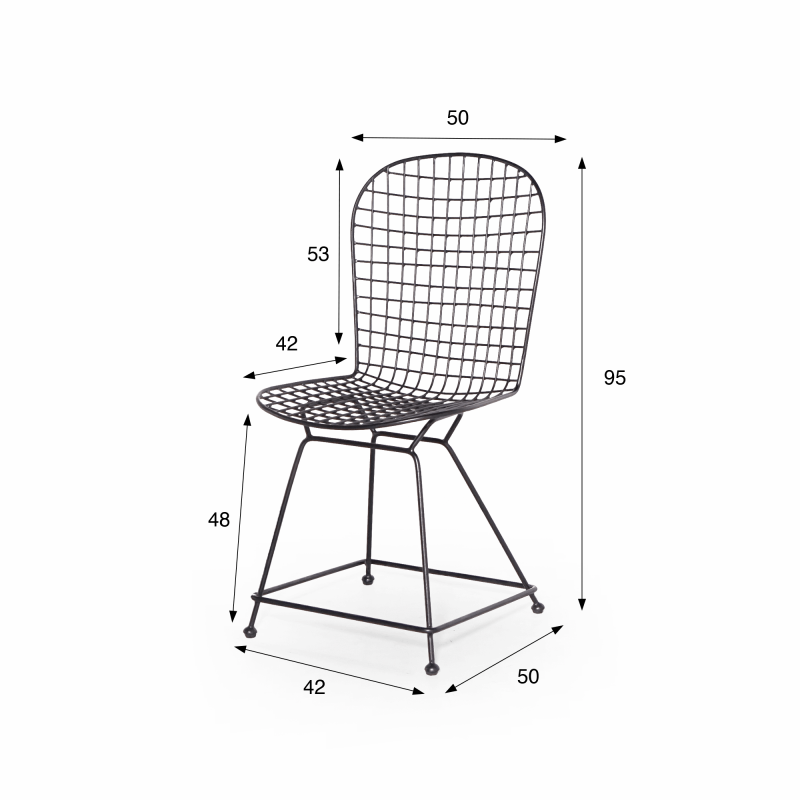 Fabriquée artisanalement en métal plein laqué noir, la chaise en métal de style industriel Wire joue sur la transparence et la géométrie de son treillis. Son dossier haut de 53 cm épouse subtilement la forme du dos, tandis que l’assise de 42 cm de profondeur et 50 cm de large offre un confort stable et équilibré. Les lignes fines et régulières de sa structure créent une impression aérienne, renforcée par ses pieds fuselés reliés par une barre transversale qui assure une parfaite stabilité.
