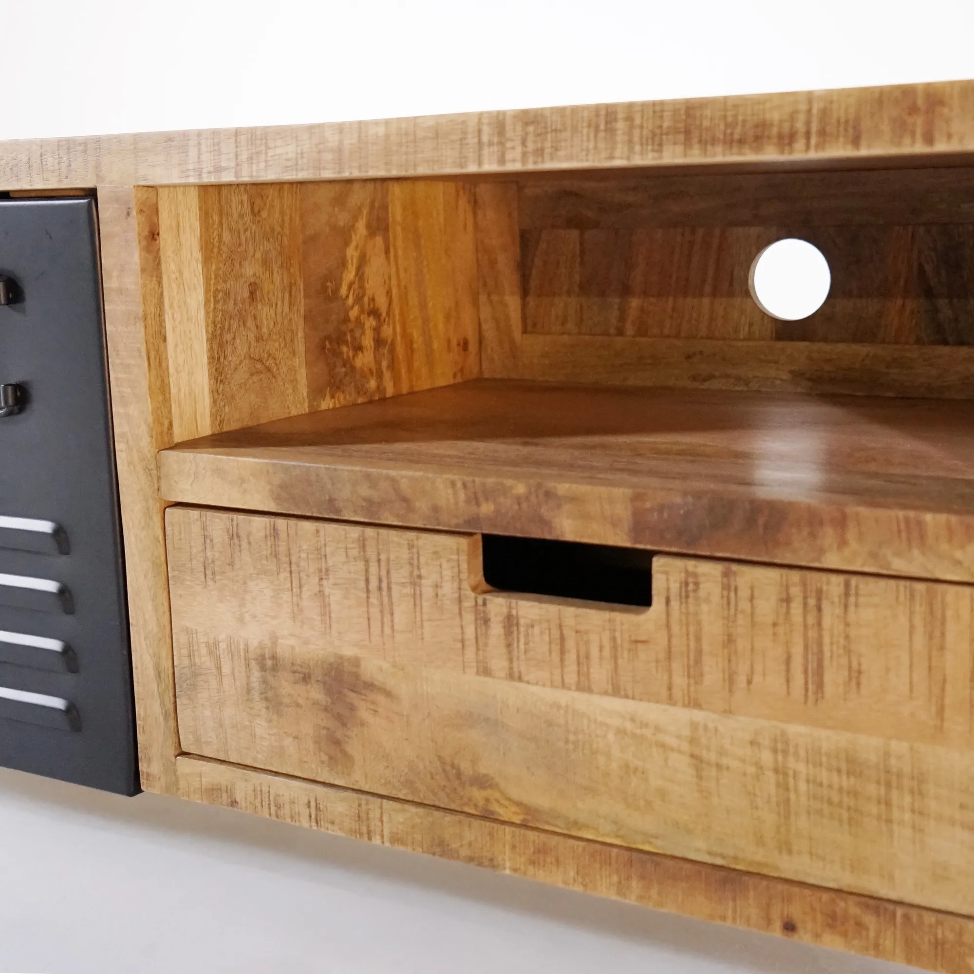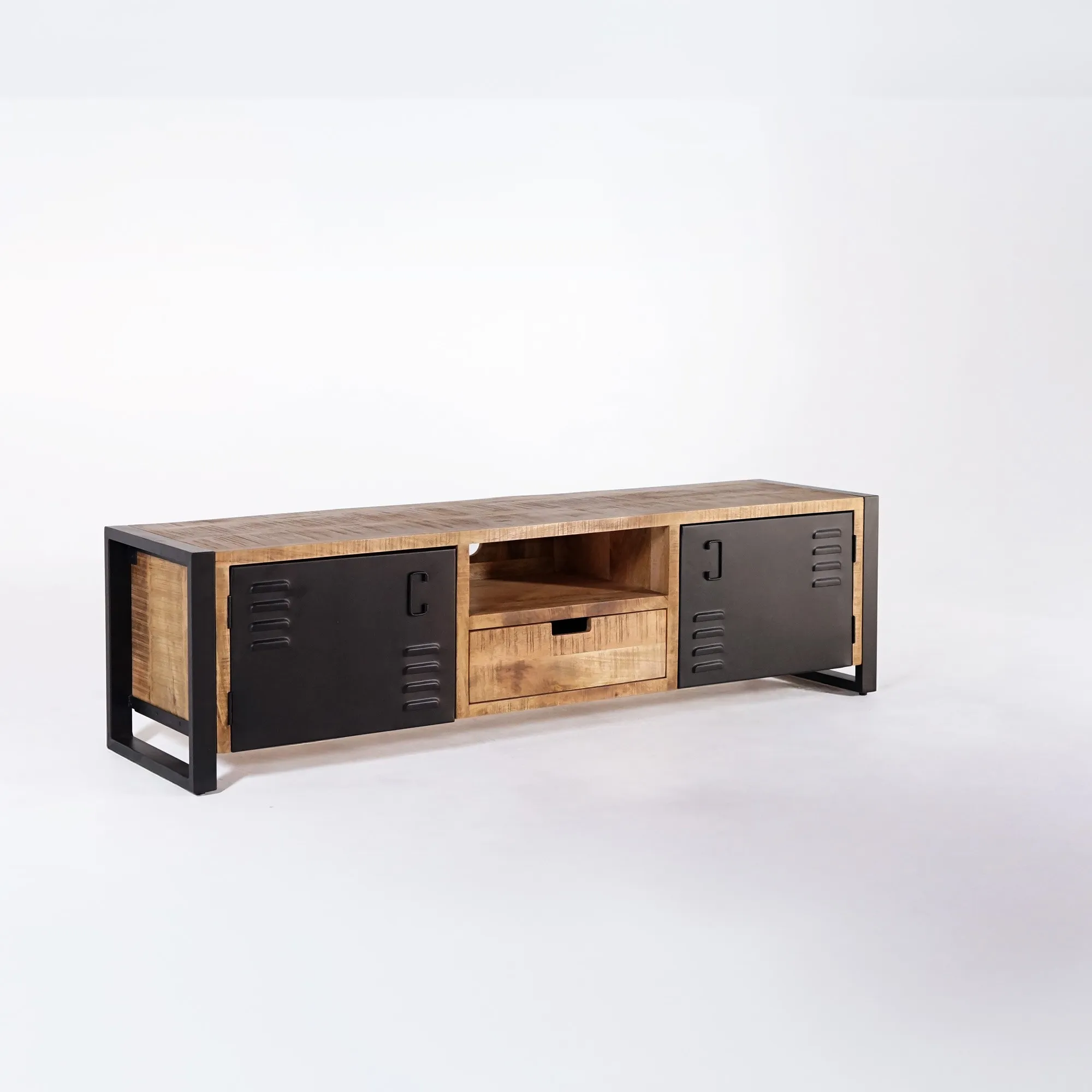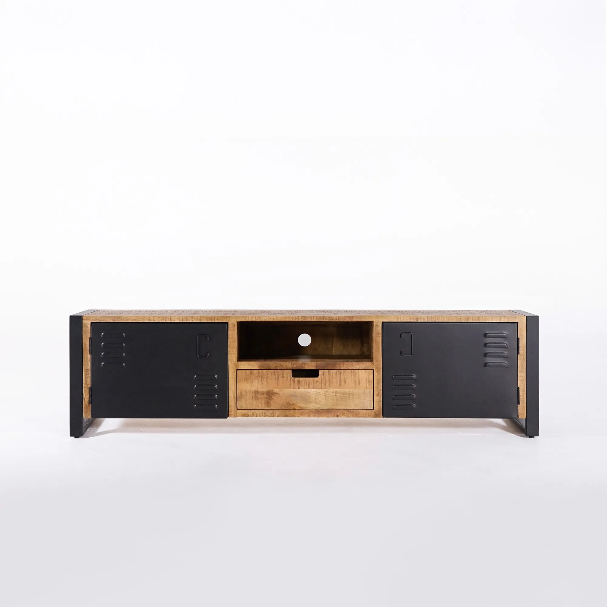 Kansas Meuble TV en bois massif manguier et porte en métal 180 cm - Kansas