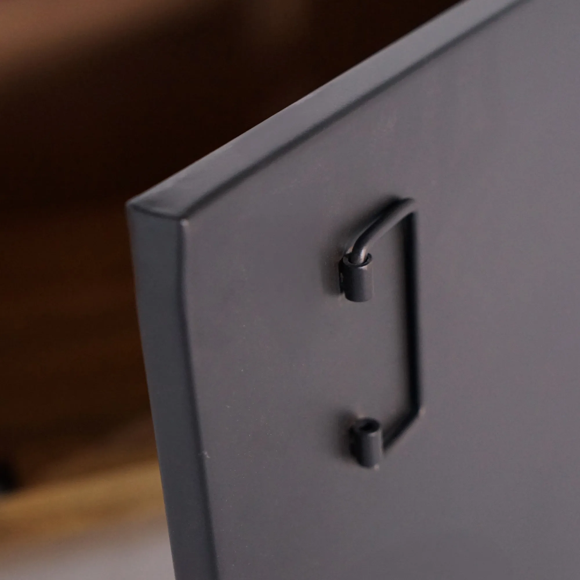Avec ses 180 cm de long et ses 50 cm de haut, ce meuble TV en bois massif manguier et porte en métal propose une structure pensée pour accompagner les usages du quotidien. Derrière les deux portes battantes en métal, inspirées des casiers industriels, se trouvent deux grands espaces de 53 × 35,5 cm et 40 cm de profondeur, parfaits pour ranger accessoires de consoles, jeux ou objets multimédias. Nos designers ont également intégré un large compartiment ouvert de 53 × 16 cm, doté d’un orifice discret pour le passage des câbles, offrant un rangement aéré et fonctionnel pour vos appareils. Juste en dessous, un tiroir en manguier de 52 × 16 × 32 cm accueille télécommandes et petits objets du salon, pour un espace toujours soigné.