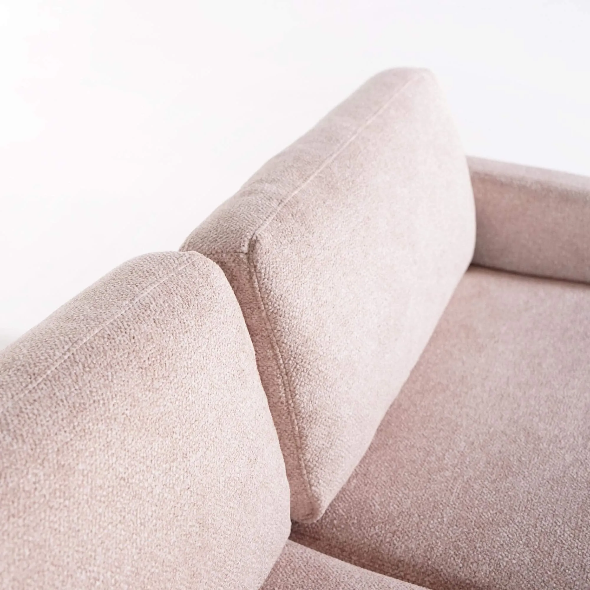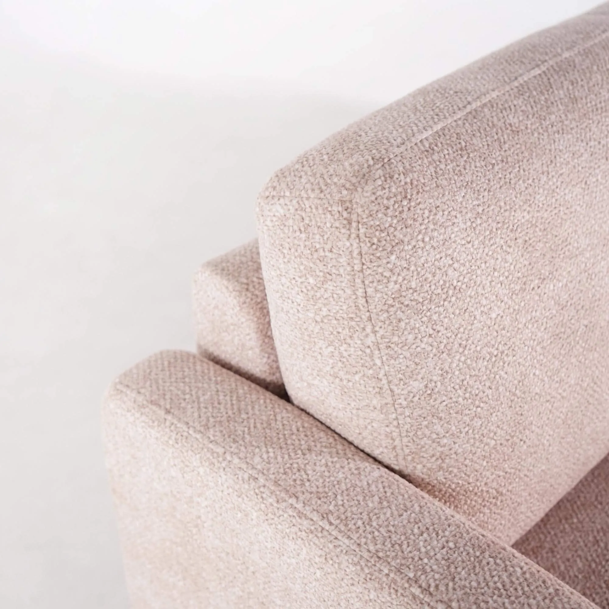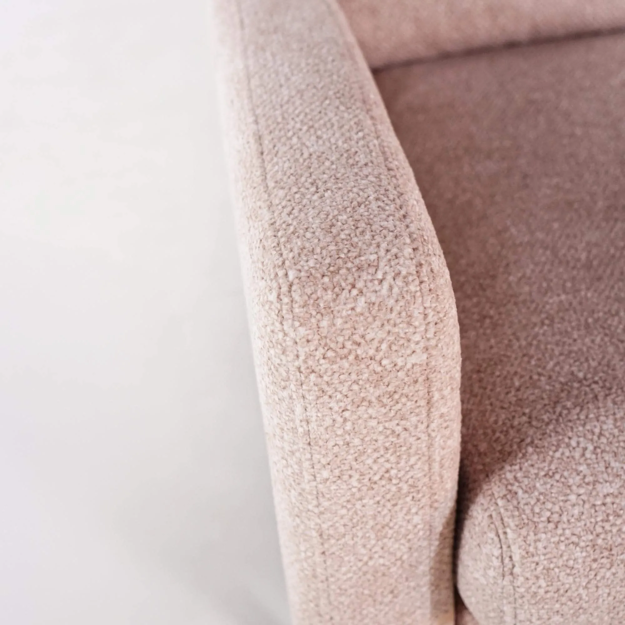 Le tissu sélectionné pour habiller ce canapé design 3 places est un bouclé coloris sable, une matière douce et chaleureuse au toucher raffiné. Ce revêtement, certifié OEKO-TEX®, garantit l’absence de substances nocives et offre une résistance à la lumière de niveau 4, gage de durabilité. Le bouclé, au relief discret et texturé, évoque une atmosphère cocooning tout en conservant une allure résolument contemporaine. Nous avons choisi ce tissu pour son équilibre entre confort et caractère, ainsi que pour sa facilité d’entretien au quotidien.
