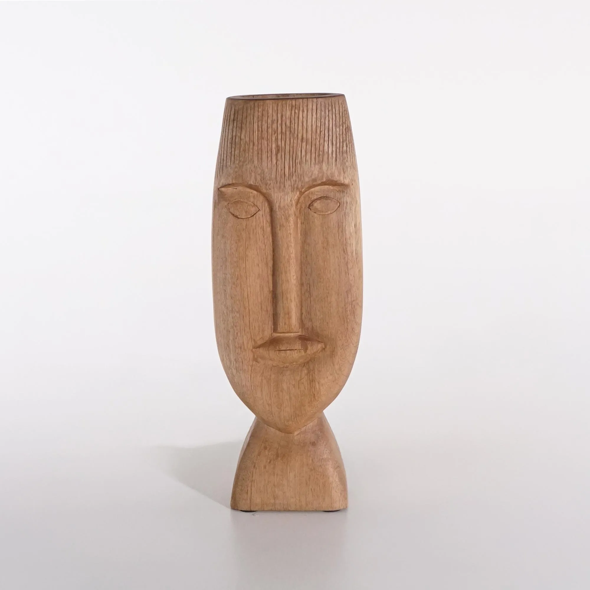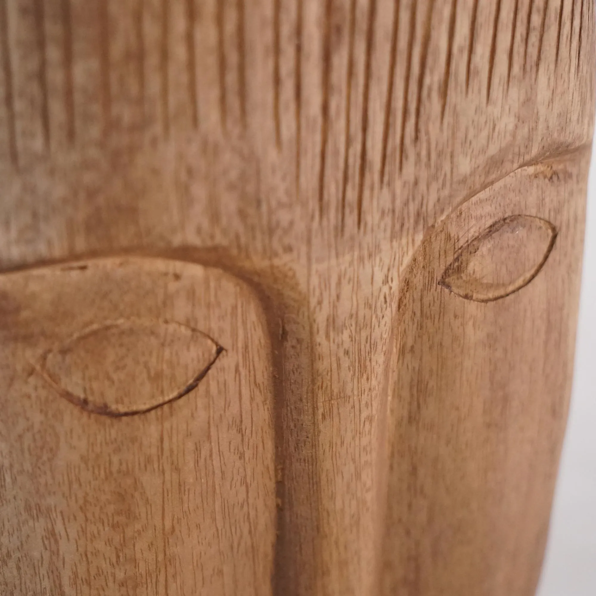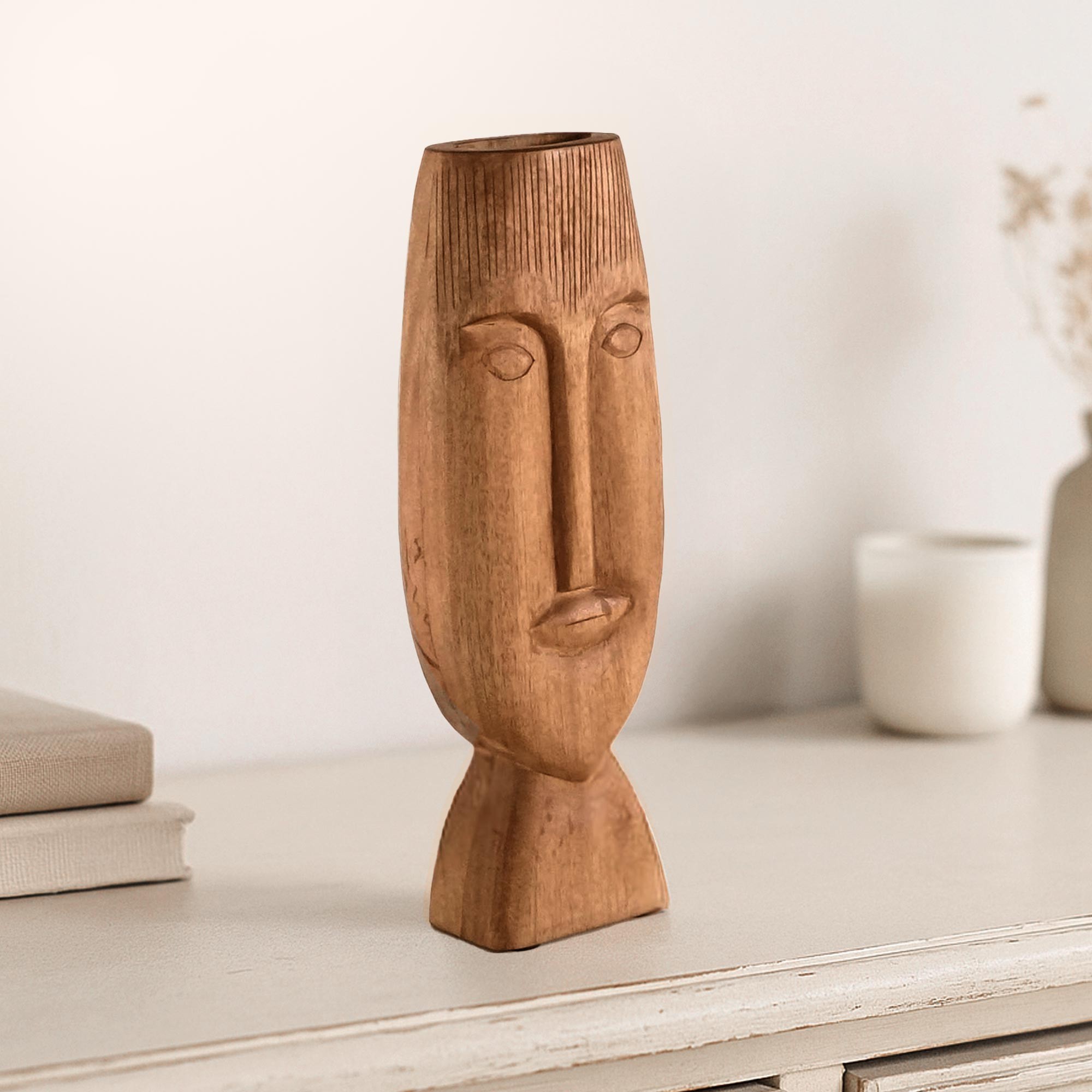 Façonnée à la main dans du bois massif de manguier, la statue décorative en bois sculpté Mana incarne l’équilibre parfait entre art et matière. Nous avons imaginé cet objet décoratif comme une pièce empreinte de sérénité, où les lignes minimalistes se mêlent à la chaleur naturelle du bois pour créer une présence apaisante et intemporelle.