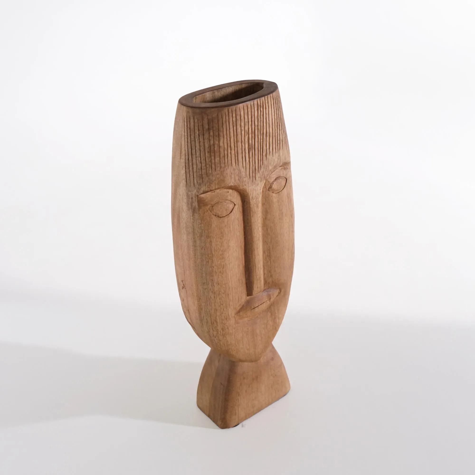 D’une hauteur de 53 cm, cette statue décorative en bois sculpté élancée attire le regard par la pureté de ses formes et la subtilité de ses volumes. Son visage stylisé, taillé d’un seul geste dans la matière, évoque les figures tribales et les arts premiers, tout en conservant une interprétation moderne et épurée. Le grain délicat du manguier, ses nuances dorées et son toucher soyeux révèlent la noblesse du matériau, tandis que chaque détail du travail manuel témoigne du savoir-faire artisanal qui nous tient à cœur.