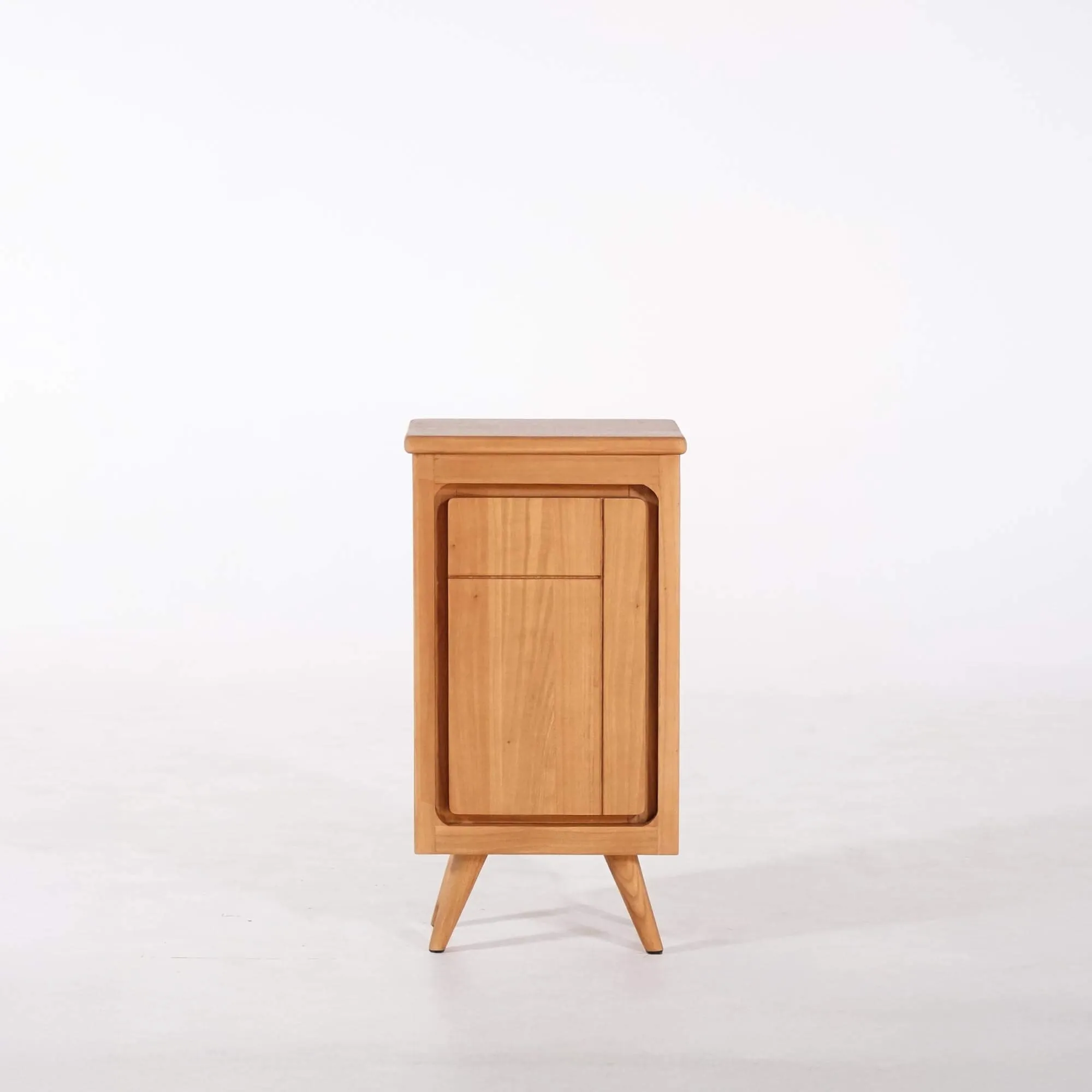 Pour ce meuble lave mains en bois massif, nos designers ont imaginé un piètement conique de 16 cm qui allège visuellement l’ensemble tout en facilitant l’entretien du sol. Cette élévation donne l’impression que le meuble flotte légèrement, renforçant son caractère aérien et son inspiration japandi. Installé tel quel, sans montage supplémentaire, il trouve rapidement sa place dans une salle de bain contemporaine, zen ou aux accents naturels.