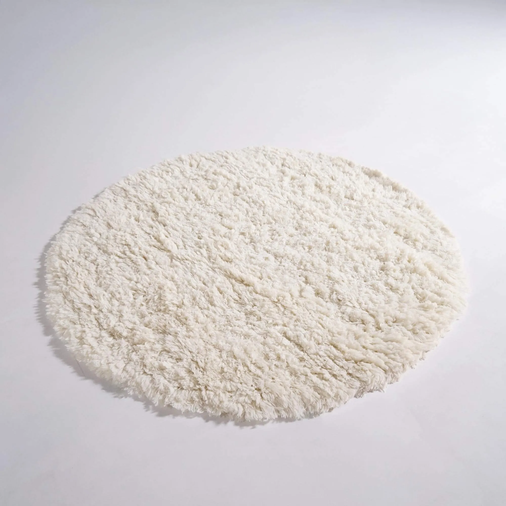 La teinte blanche que nous avons sélectionnée pour ce tapis en laine rond, subtilement nuancée par le relief du tissage, capte la lumière et révèle la texture du fil. Selon l’éclairage, la surface paraît tantôt soyeuse, tantôt plus texturée, donnant au tapis une vie propre au fil de la journée. Nous avons volontairement opté pour une finition sobre, sans motif appuyé, afin que le tapis en laine rond Ruma puisse dialoguer aussi bien avec des matières naturelles qu’avec des pièces plus contemporaines.
