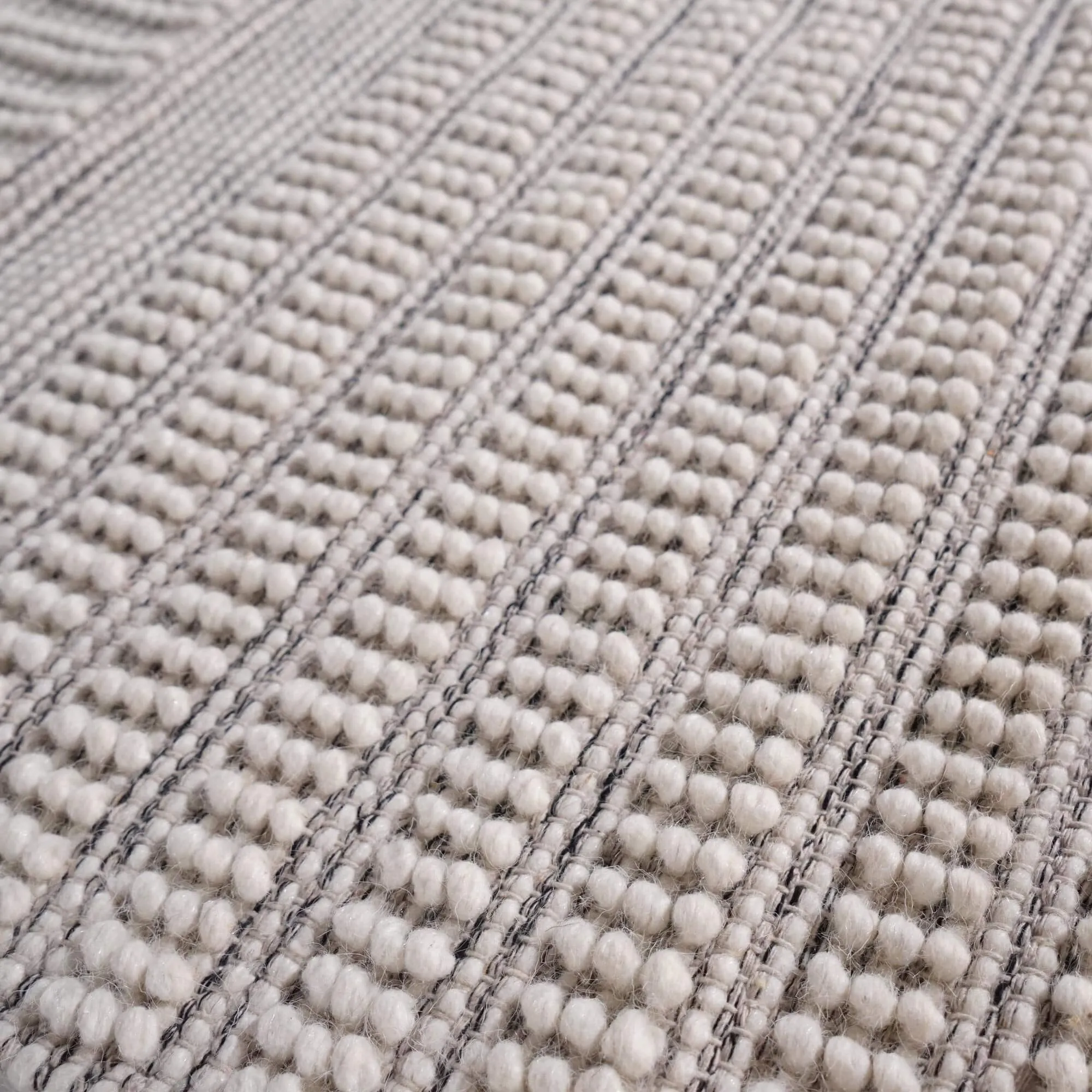 Entièrement réalisé à la main, le tapis en laine Wola révèle un travail minutieux autour de la matière et du relief. La laine 100 %, apporte une sensation enveloppante sous le pied. Avec une épaisseur d’environ 4 mm, il offre un équilibre subtil entre confort et discrétion, se glissant facilement sous une table basse ou devant un canapé sans créer de surépaisseur.