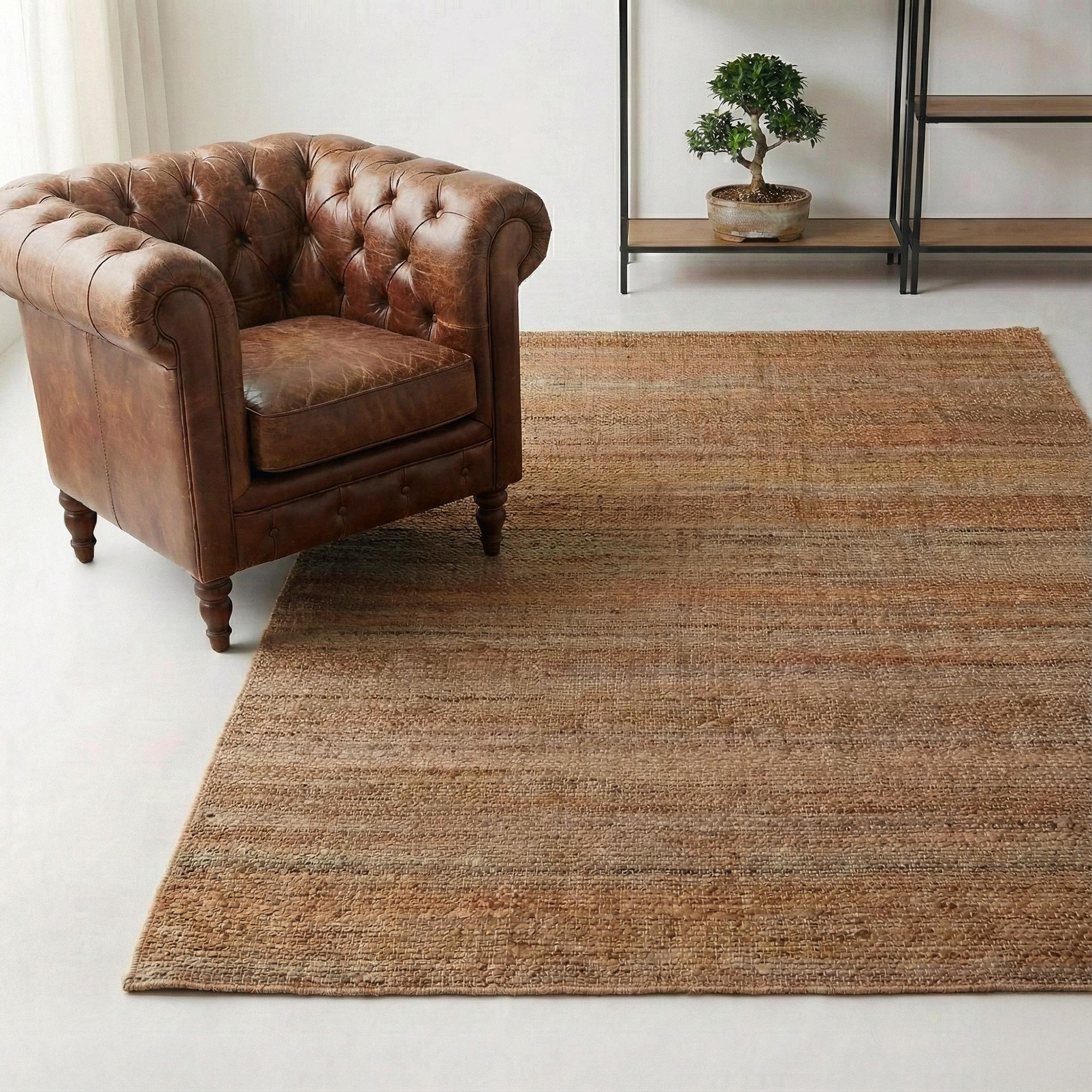 Nous avons accordé une attention particulière aux finitions de ce tapis en jute, avec des bords soigneusement travaillés qui soulignent la ligne du tapis et garantissent une bonne tenue dans le temps. La jute, par sa robustesse, supporte une utilisation régulière tout en conservant son aspect authentique, ce qui fait du tapis en jute Noa un choix durable et responsable.