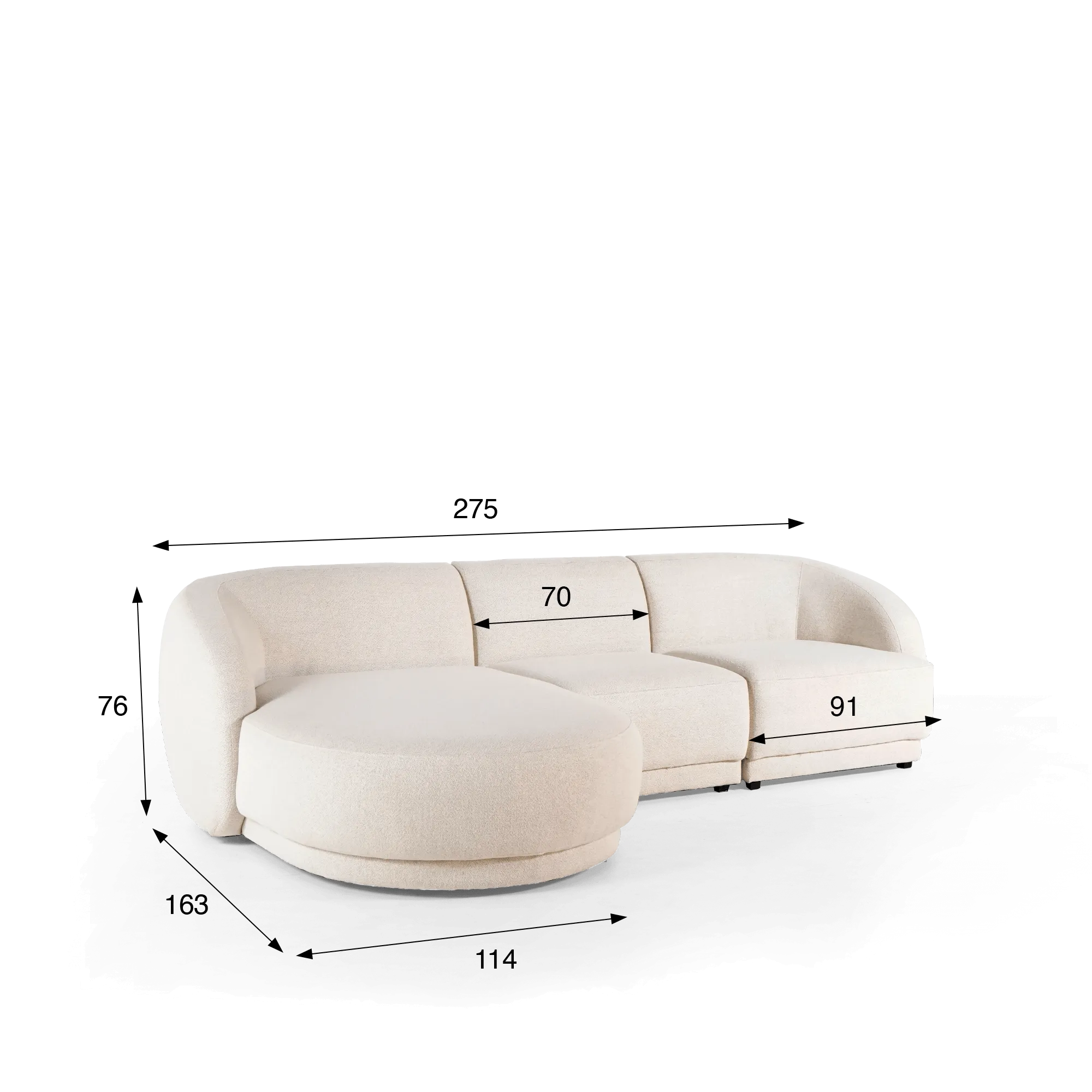Canapé d'angle 4 places avec méridienne gauche - Elora 275 x 163 x 76 cm
