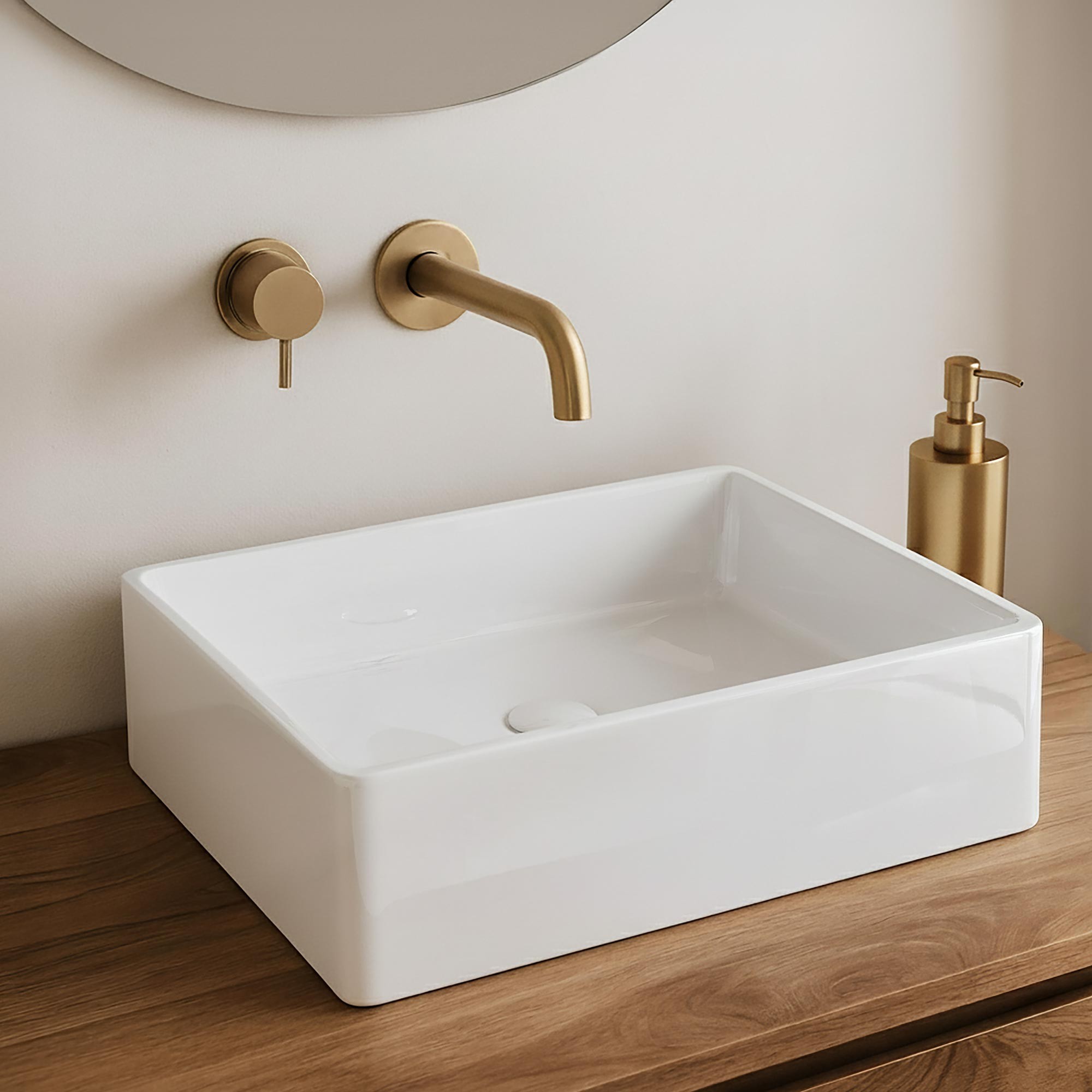 Dans une salle de bain contemporaine, la vasque en céramique à poser Nova trouve naturellement sa place. Elle accompagne aussi bien un meuble en bois massif aux nuances chaleureuses qu’un support minéral plus épuré, créant un contraste élégant entre matière et lumière. Nous aimons l’imaginer au cœur d’un espace lumineux, où le geste du matin devient plus fluide, plus apaisé.