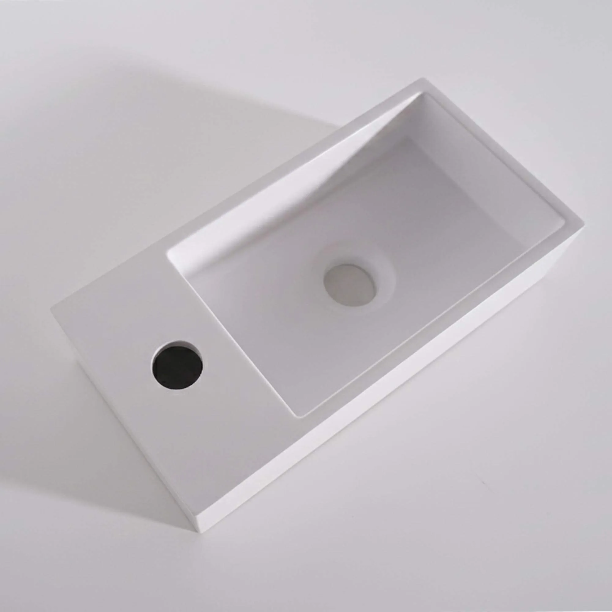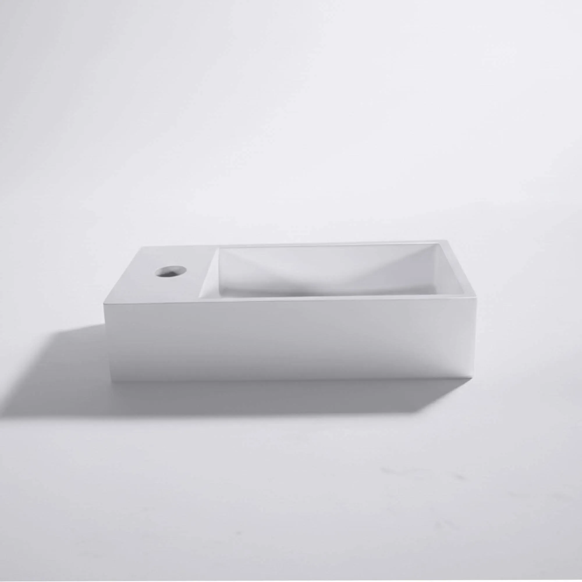 La vasque en céramique à poser, blanc brillant, Klepsy est née d’une volonté simple : proposer une pièce compacte, précise et expressive, capable de structurer un espace sans jamais le figer. Nos designers ont travaillé une forme rectangulaire volontairement nette, adoucie par un bassin intérieur subtilement creusé, afin d’offrir un équilibre juste entre rigueur graphique et confort d’usage.