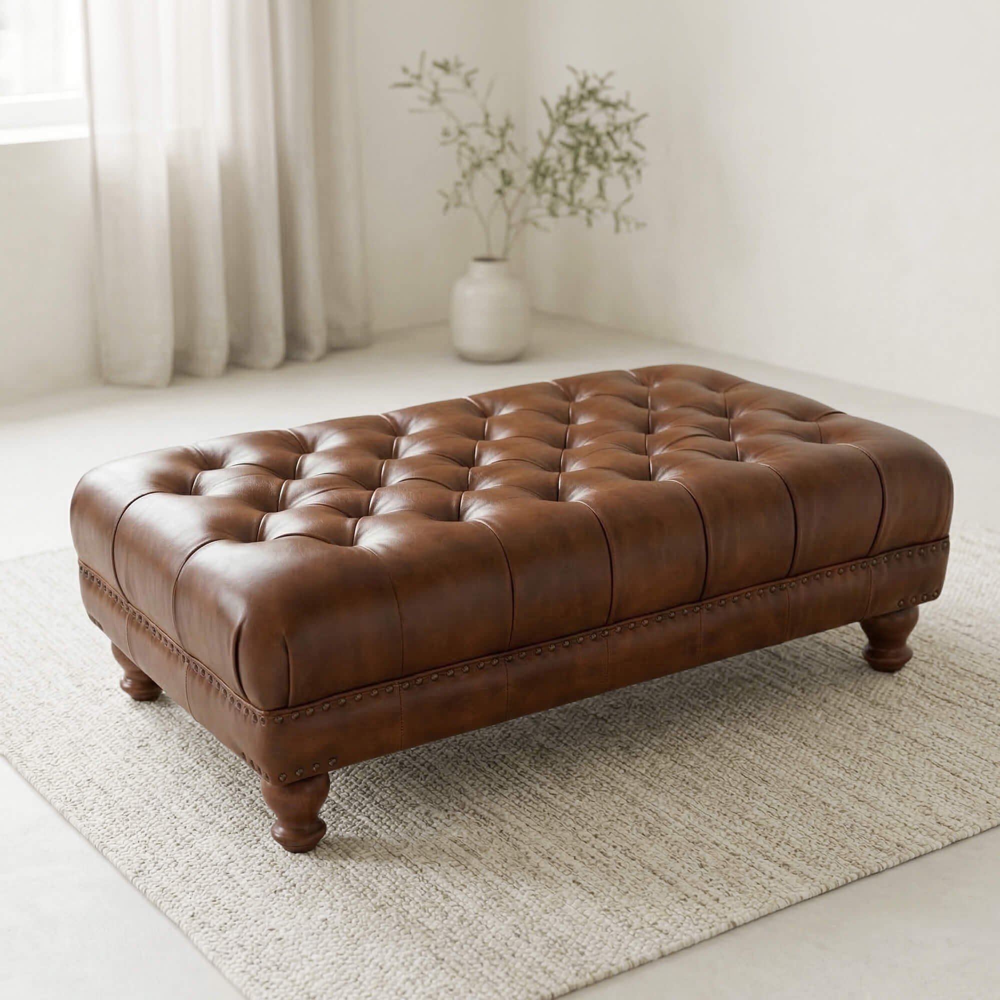 Dans le développement de ce repose-pieds capitonné en cuir véritable, nous sommes partis d’une idée simple : créer une pièce qui invite naturellement à ralentir, à s’installer, à profiter. Nous voulions retrouver cette sensation des salons Chesterfield anglais d’autrefois, où chaque élément avait une présence, sans jamais être figé dans le passé.