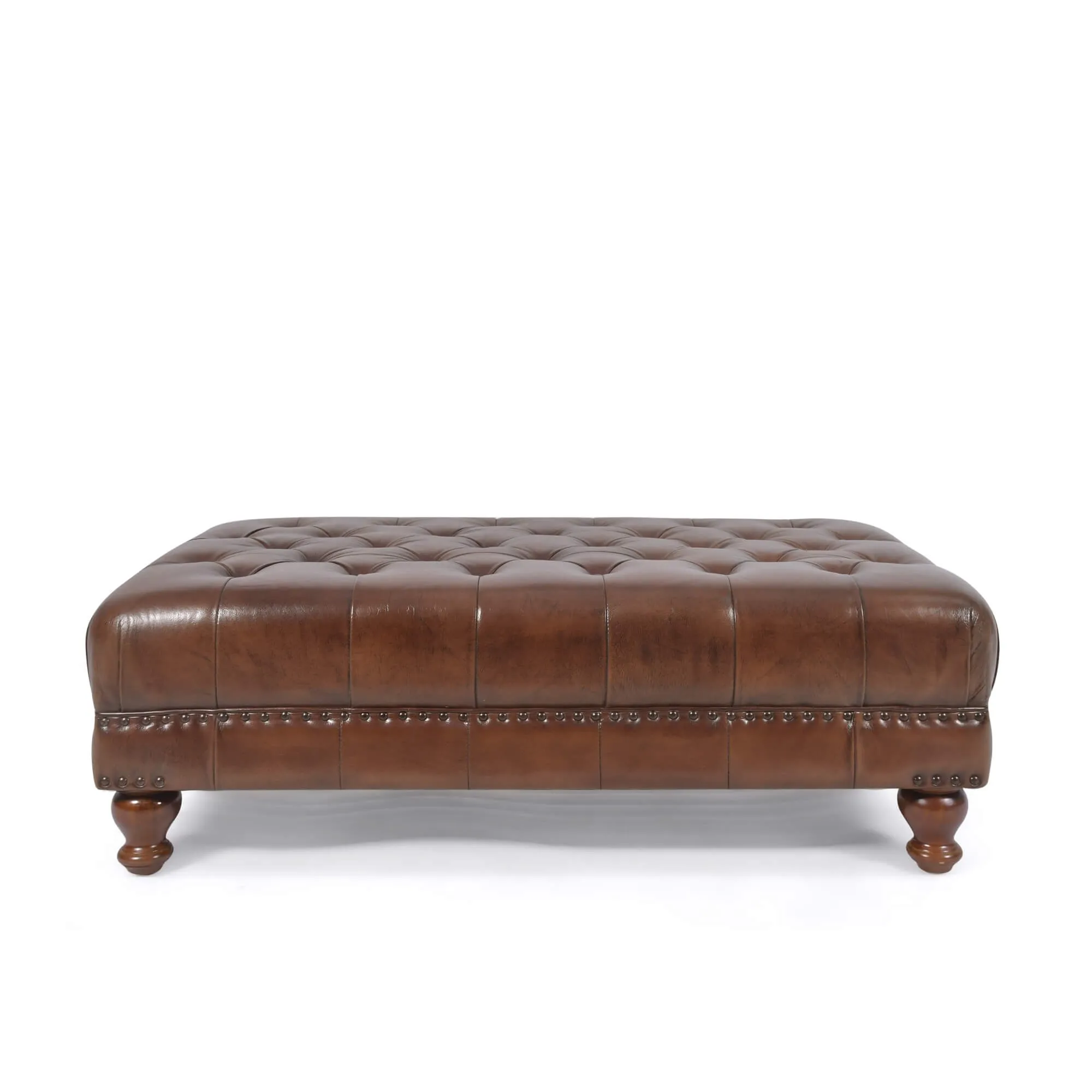 Repose-pieds capitonné en cuir véritable marron