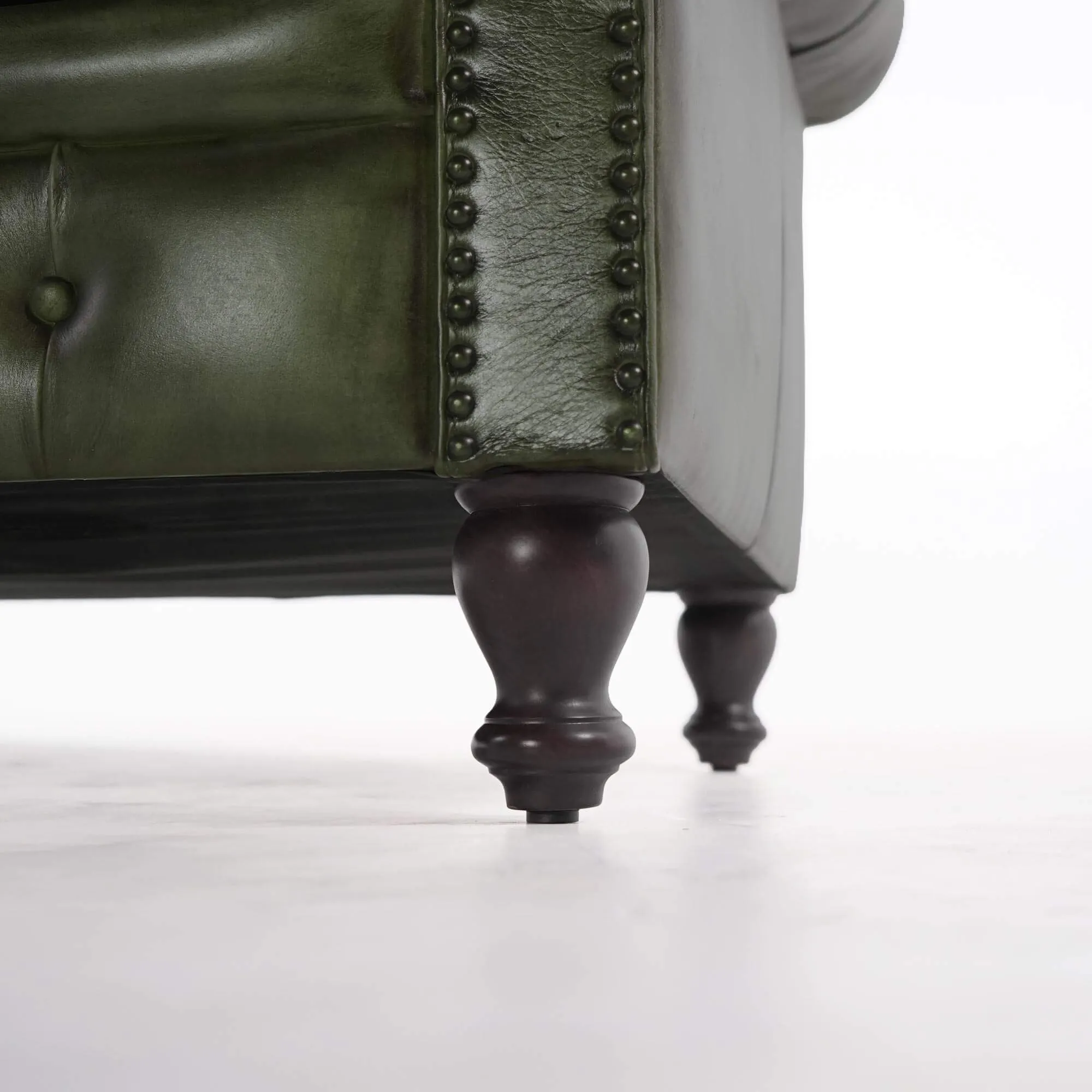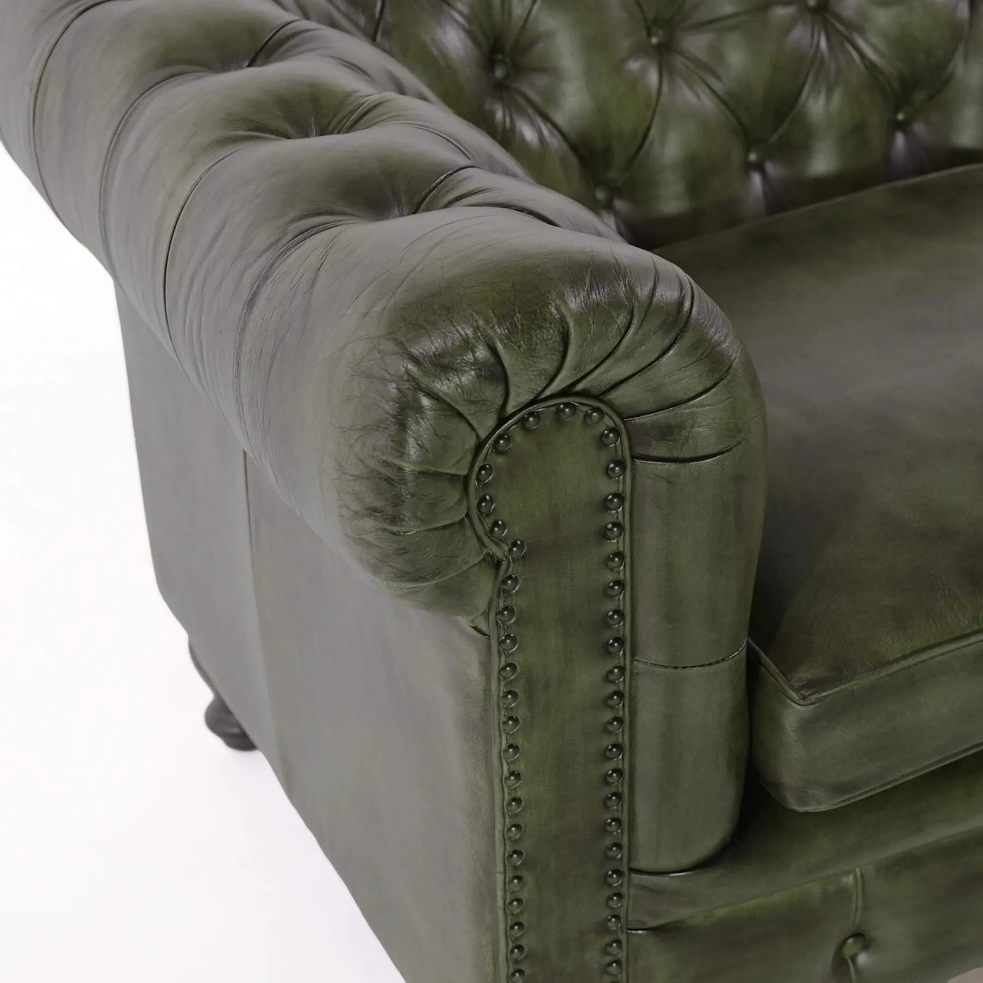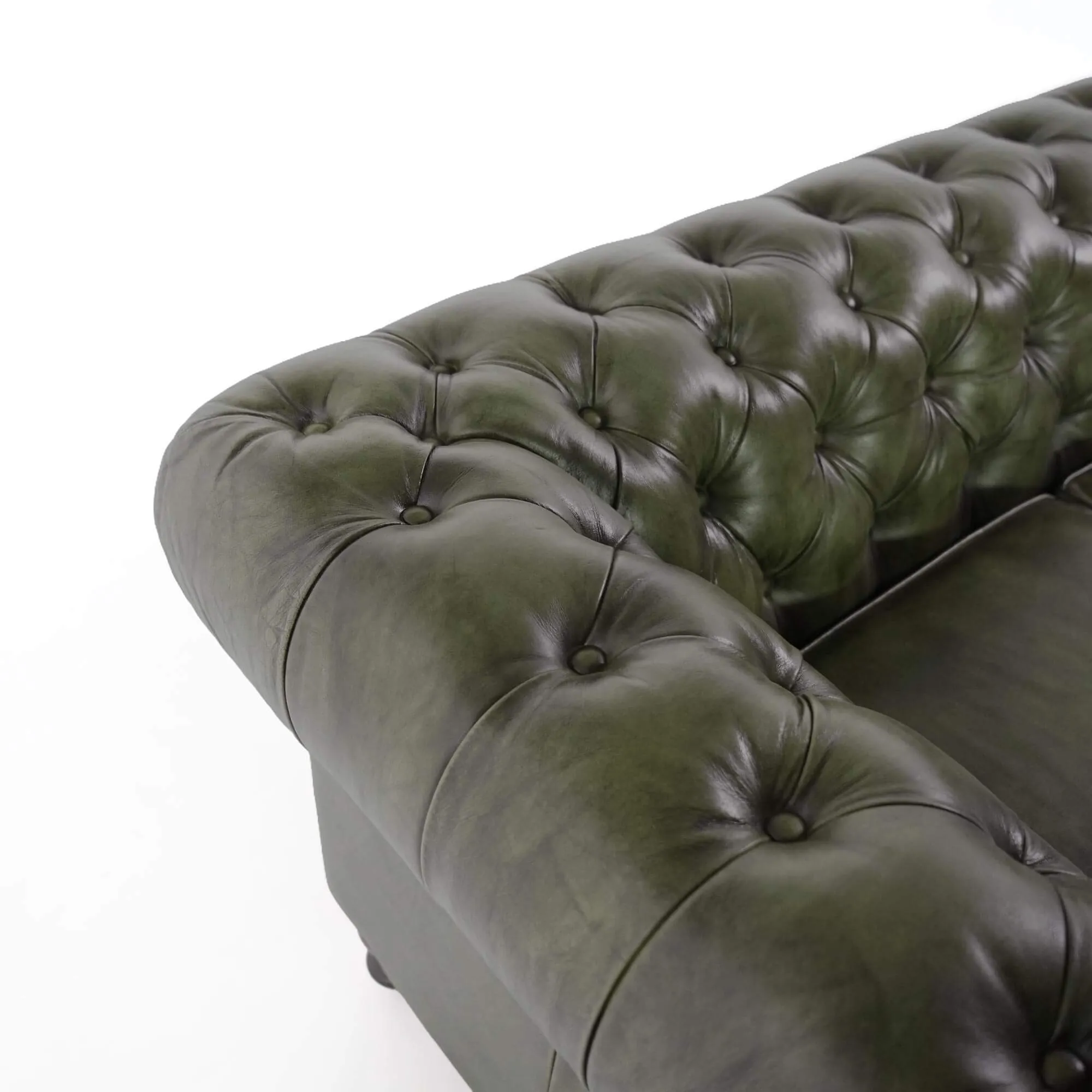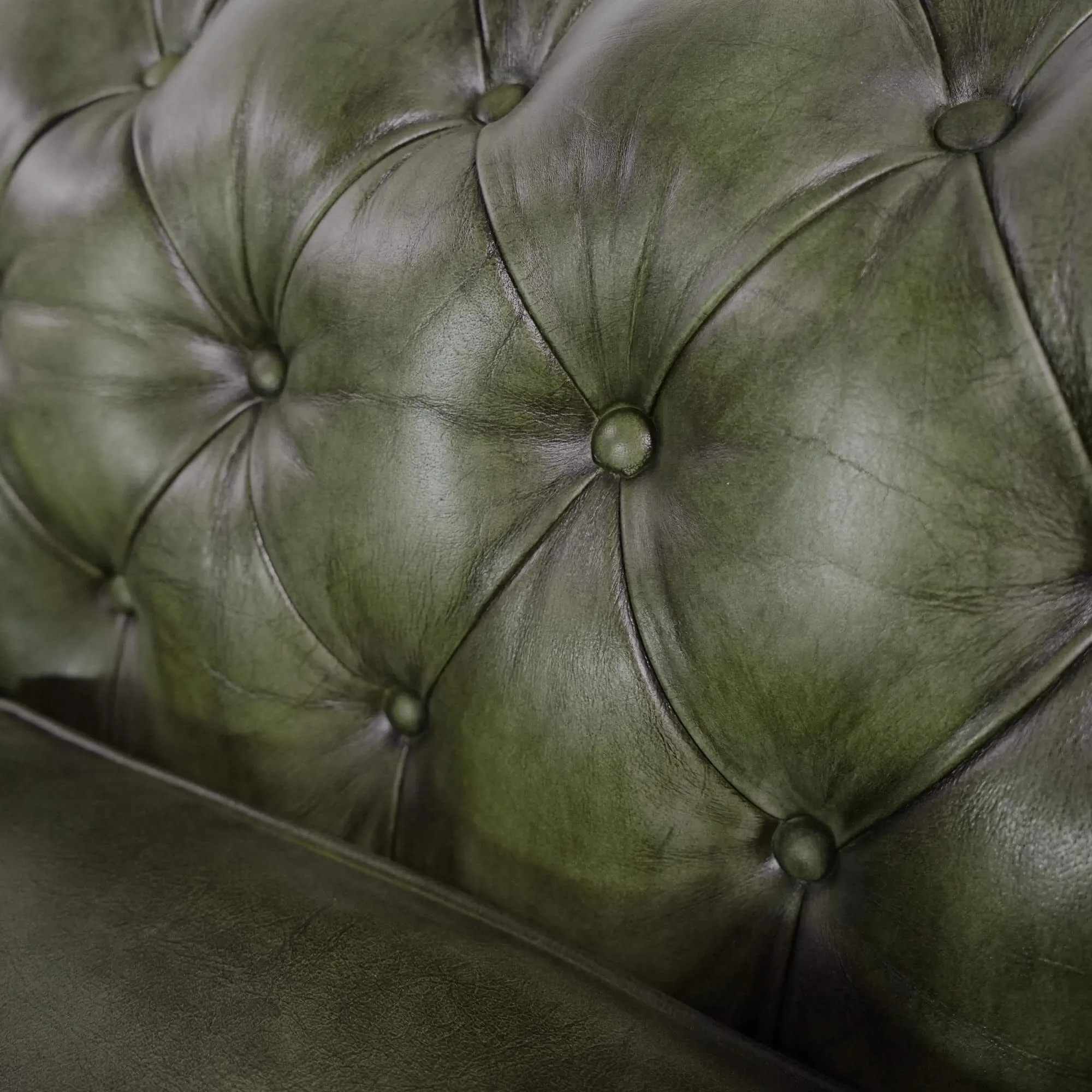Canapé Chesterfield en cuir véritable vert 3 places - Edward