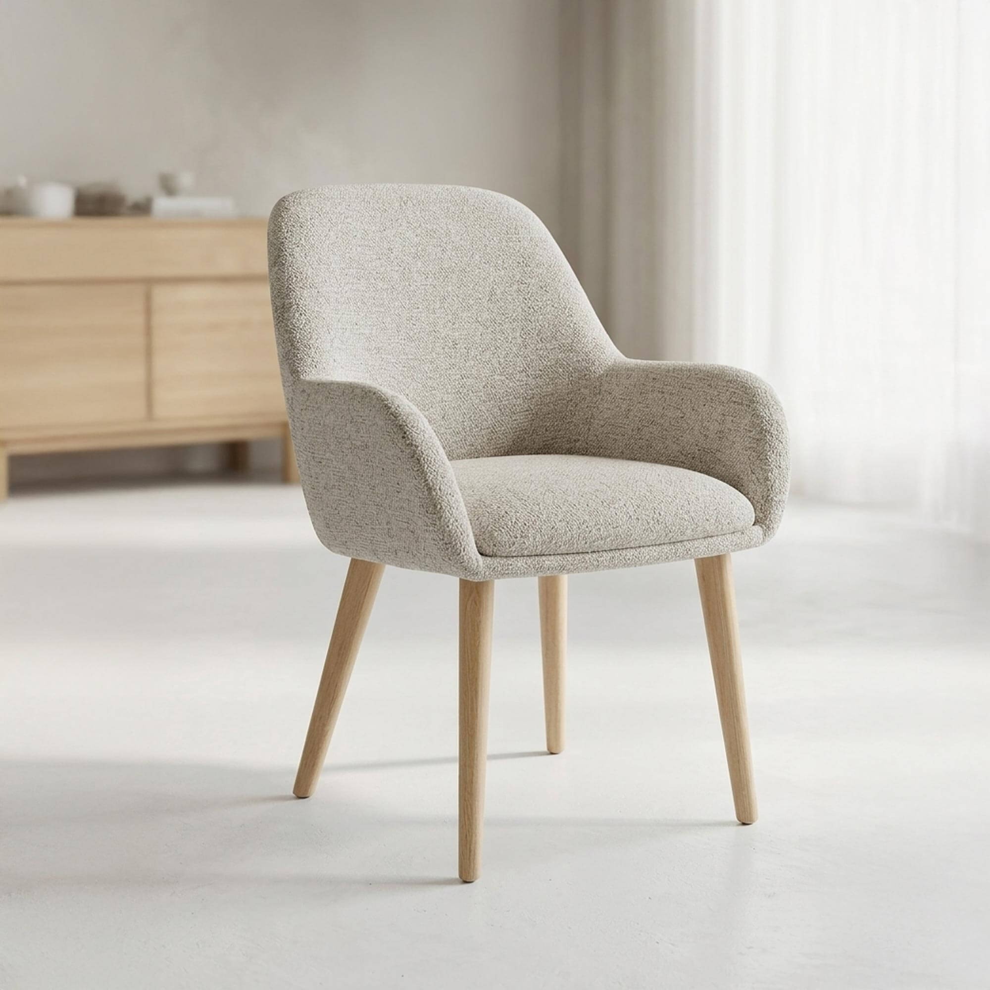 Le tissu sélectionné pour la chaise pour salle à manger scandinave en tissu Alva révèle un toucher délicatement texturé qui capte la lumière avec finesse, apportant relief et profondeur à sa teinte naturelle. Cette matière, à la fois résistante et agréable au contact, renforce l’impression de confort tout en conservant une esthétique sobre et intemporelle. Nous avons choisi d’associer ce revêtement à des pieds en bois de hêtre, dont la teinte claire souligne l’inspiration nordique du modèle. Le contraste entre la texture du tissu et la chaleur du bois massif crée un équilibre harmonieux, fidèle à l’esprit de la collection Alva.