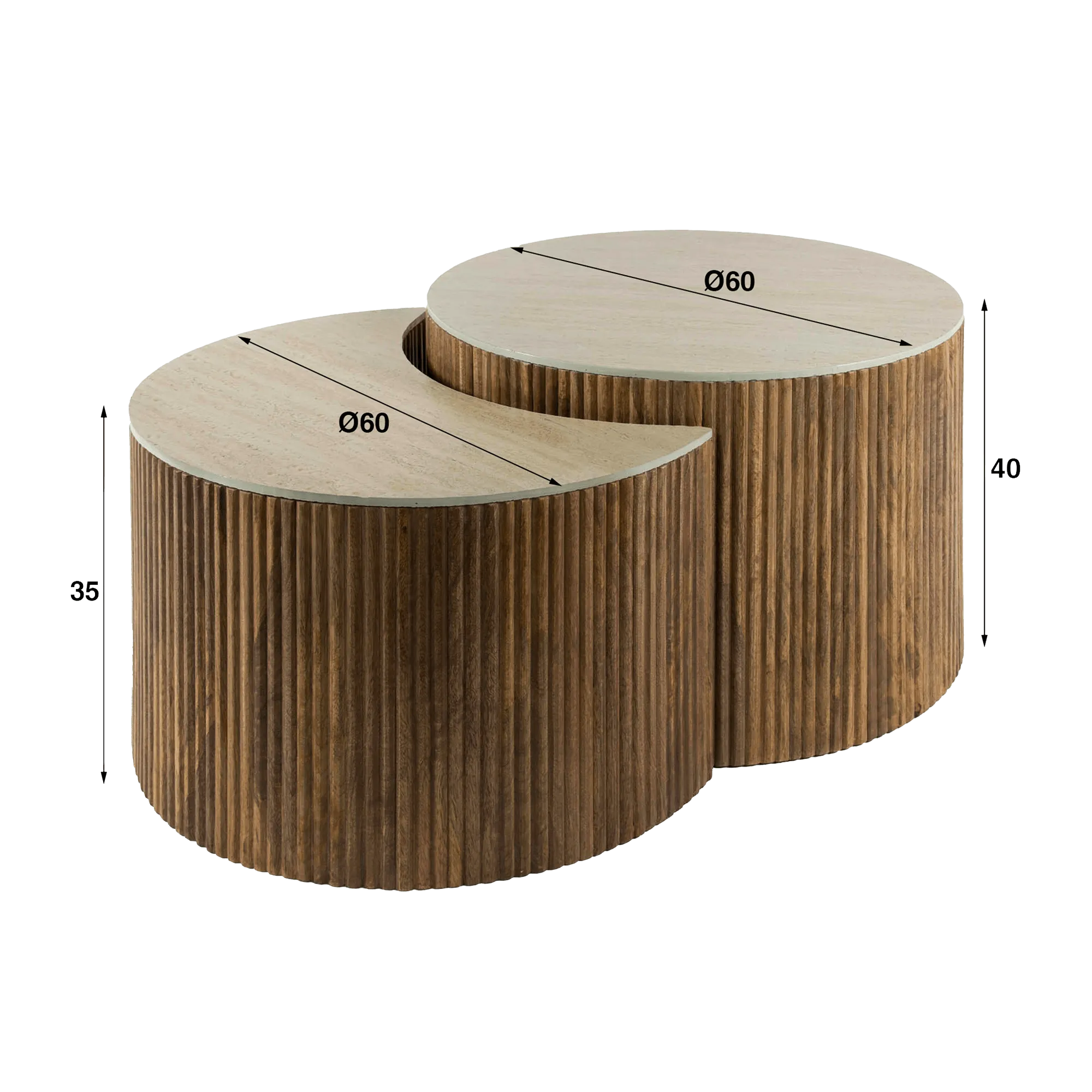 Table basse demi-ronde en bois de manguier massif (lot de 2) - Nuovo