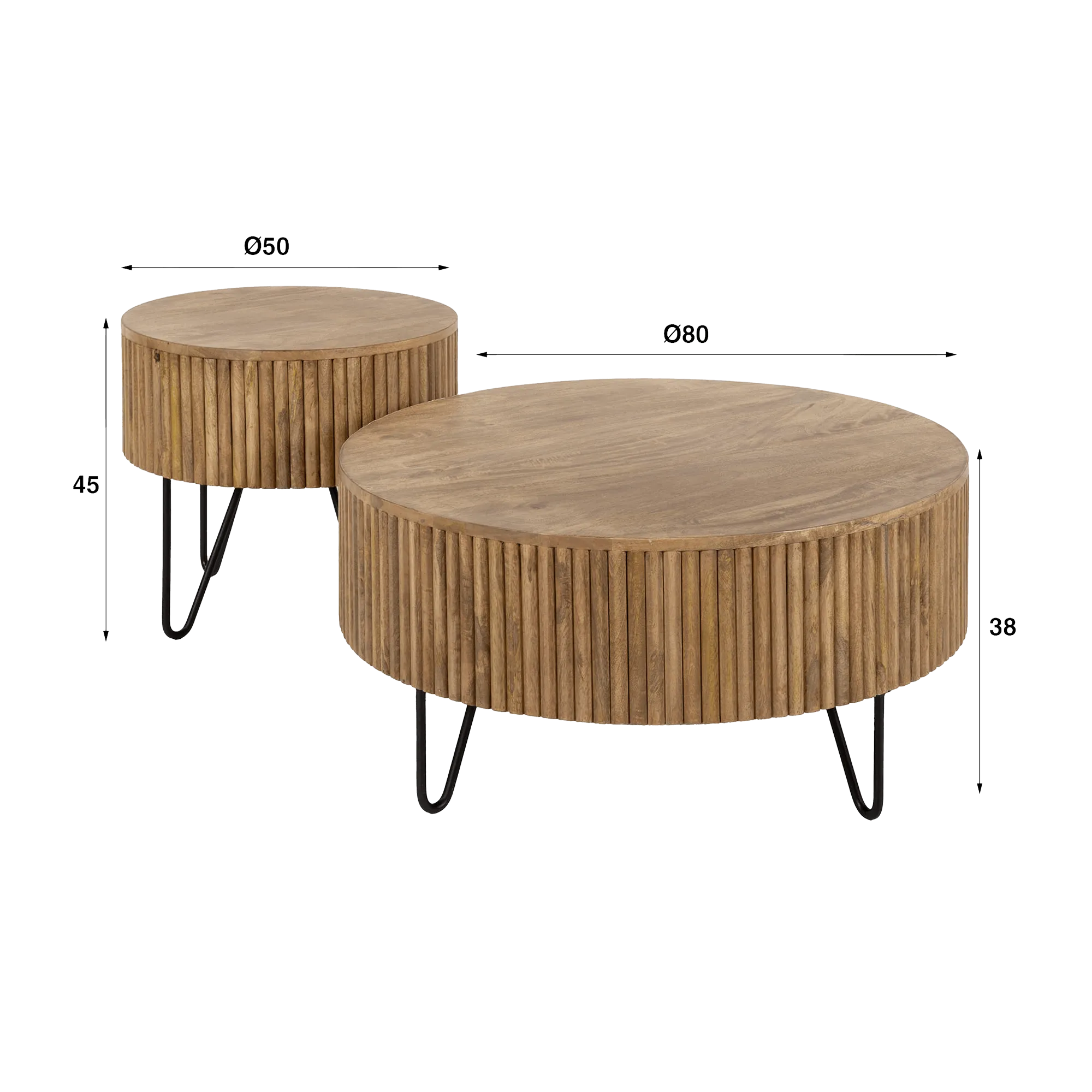 Table de salon ronde en bois massif de manguier (lot de 2) - Cresco