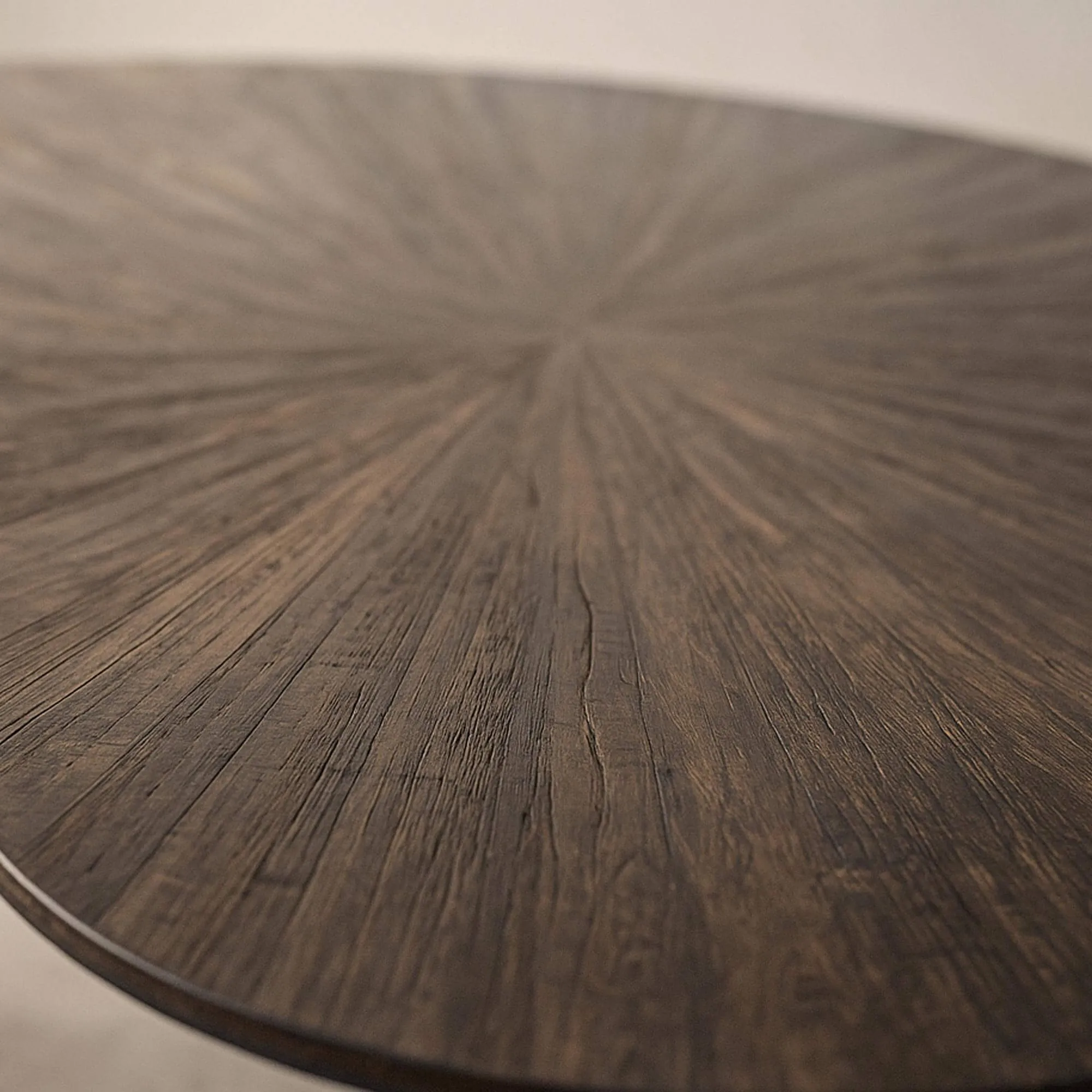 Nous avons imaginé la table basse en bois de teck forme organique couleur marron Ovo comme une pièce qui invite à ralentir, à respirer et à profiter pleinement de l’atmosphère d’un salon. Son plateau en teck dessine un rayonnement subtil, presque minéral, qui naît au centre et s’étire vers les contours. Ce motif, sculpté à la main, est devenu l’un des éléments dont nous sommes les plus fiers : il capte la lumière avec douceur, révèle la richesse du bois et crée un rythme visuel apaisant. Chaque veine, chaque relief témoigne du travail minutieux de nos artisans.